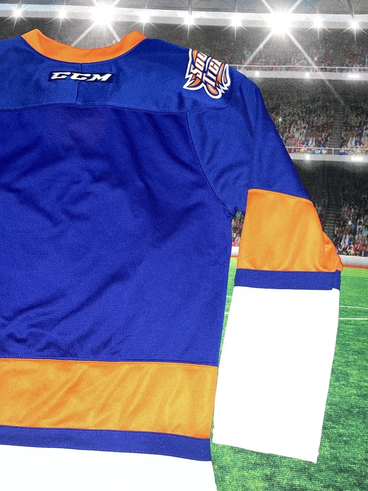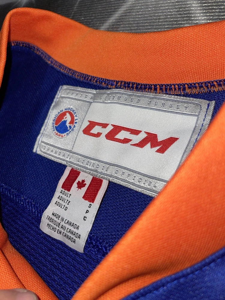 Item is nice little spot on the sleeve smoke free Show your support for the New York Islanders with this Bridgeport Sound Tigers AHL hockey jersey. Made by CCM, this jersey is perfect for any fan of the National Hockey League (NHL). It features the team's colors of blue and the iconic Sound Tigers logo on the front. This jersey is a size small and made for men. It is perfect for any fan of the Islanders looking to show their support for the team. Whether you're heading to a game or just want to add to your collection of fan apparel, this jersey is a great choice.