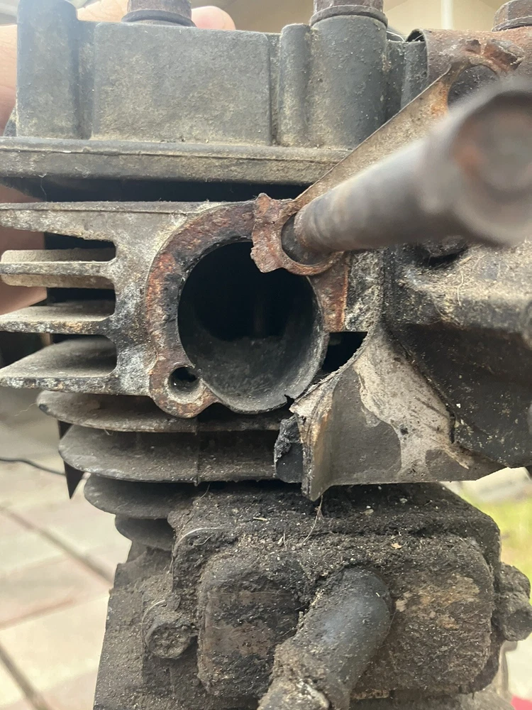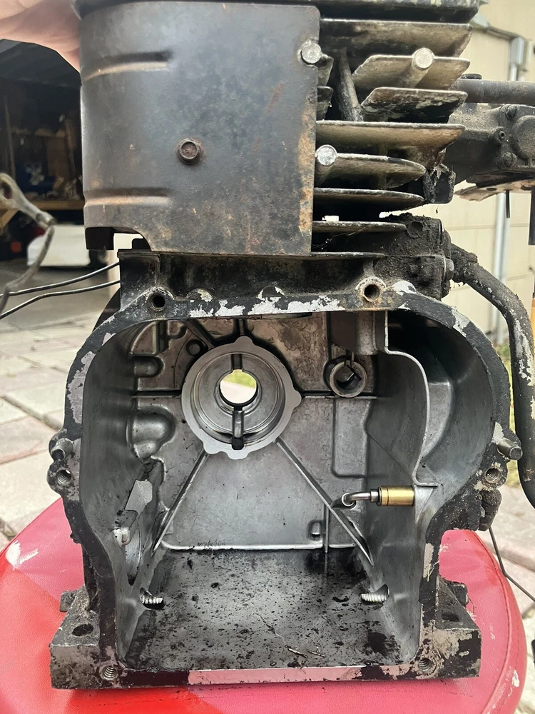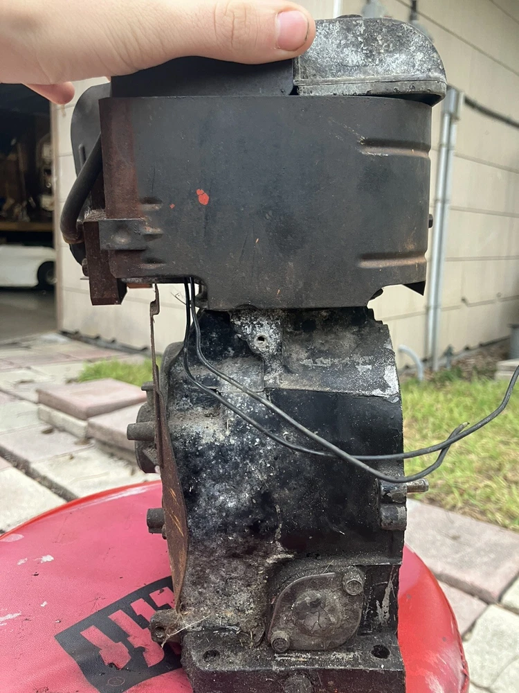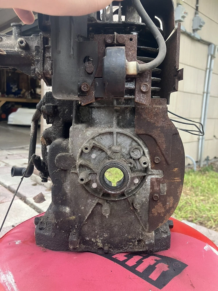 Been sitting in my barn for years. THIS BLOCK IS NOT READY TO GO! I bought this block under the premise it was ready to go. The exhaust port is blown out, can probably be welded back together. It is the I/C block with the sleeve and bearings. Comes with valves and coil that just needs a boot head Carb is not included
