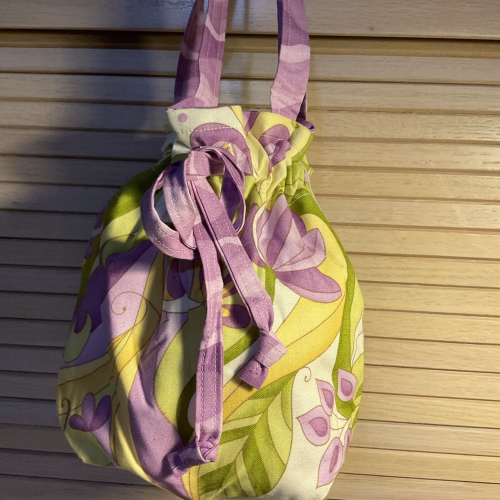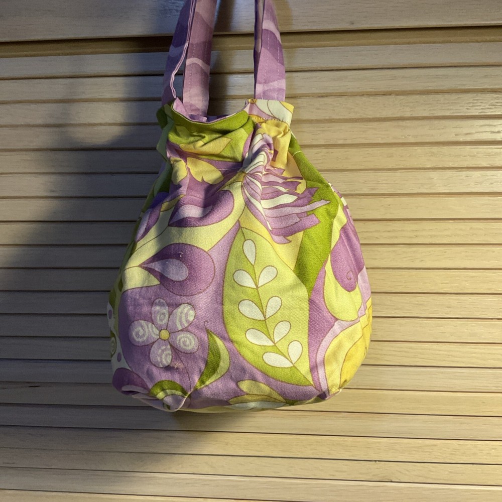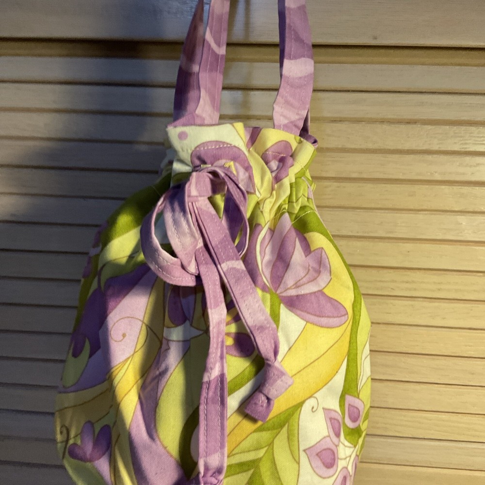 This Bright and Happy Pumpkin Bag is a perfect accessory for any occasion. Made with cotton exterior and lining material, this round bucket and drawstring bag has a width, height, and depth of 6 inches, making it a small yet spacious bag. The multicolor exterior and purple lining color, along with the double cotton handles, add to its colorful and bohemian theme. The Silver Pumpkin brand bag is ideal for travel or casual use, and its drawstring closure ensures the safety of your belongings. This handmade bag is not vintage and has its country of manufacture in the United States. Its aspects include a character of Happy, a fabric type of cotton, and a size of Small.