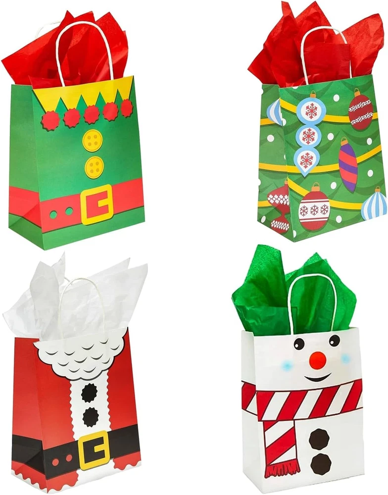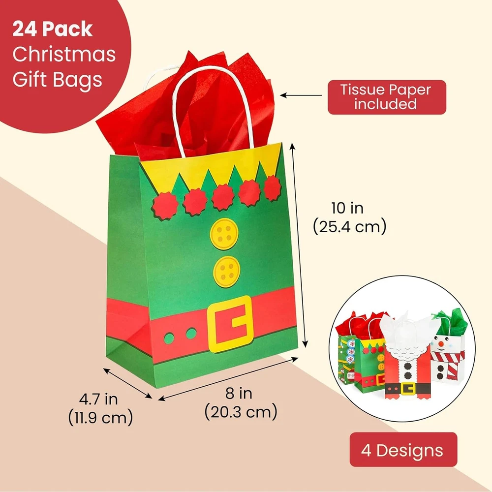 Store New Arrivals Add to Favorite View Feedback Contact Bright Creations 24 Pack Christmas Gift Bags Bulk with Handle & Tissue Paper for Xmas Present Wrapping, Holiday Party Favor Goodie Bag, Festive Party Packaging Supplies (10 X 8 In) Description Item model number DOGHU Unit Count 24.0 Count Number of Items 24 Color Multicolor Pattern Cartoon Brand Bright Creations Material Paper Item Weight 2.12 pounds Manufacturer Juvo Plus Occasion Christmas Included Components Tissue Paper Package Dimensions 13.5 x 8.46 x 3.74 inches Cartoon Character Santa Size 1 Count (Pack of 24) Christmas Party Supplies: Ideal for festive occasions, these 10 inch christmas gift bags with handles and tissue paper add charm to party favors. Ideal for school events, Christmas gatherings, or Secret Santa surprises! Multi-Purpose: A versatile choice, these christmas gift bags bulk 10 inch with sturdy handles double as shopping bags. Ideal for carrying craft fair finds, merchandise, or delicious treats like cookies, candy, and desserts! Dimensions: Spread holiday cheer with the christmas gift bags 24 pack, each measuring 8 x 10 x 4.7 inches. Featuring charming designs like an elf suit, Santa suit, snowman, and ornaments—perfect for joyful gift-giving! High-Quality: You’ll receive 24 10" christmas gift bags with handles and colored tissue paper in red, white, and green; they’re made from high-quality paper to ensure contents remain safely inside Festive Family Fun: Share the holiday spirit with the 24 christmas gift bags, perfect for sharing the season’s cheer. Thoughtful, stylish, and ready to brighten anyone’s day—give the gift of joy this holiday season! Product Description ABOUT US We offer the best prices around on high quality products. Our E-store includes media such as books, movies, music and games while offering electronics, toys, sporting apparel, clothing, tools, general home, garden items and more. SHIPPING We are always working hard to ensure your package arrives as soon as possible. Please understand that some factors like weather, high postal traffic, and the performance of shipping companies are outside of our control. We offer free shipping to the lower 48 states and ship within 2 business days of payment, usually sooner. We do not accept P.O. Boxes. Please provide a physical address. RETURNS We offer a 30-Day Return Policy on items which you are not completely satisfied with. You have the option for a full-refund or an exchange of the item. No returns are available on items shipped outside of the USA. PAYMENT We accept PayPal. CONTACT US This page content is yet to come Please ad us to your favorite seller and visit again later Thank You CUSTOMER SATISFACTION We try our very best to make sure every customer is completely satisfied. If there's a problem, message us! We're happy to help.
