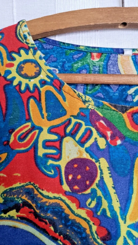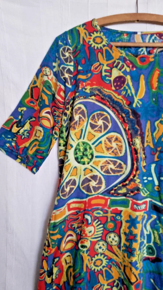Bright Multicoloured Brush Cotton Shift Dress Pockets Matisse UK M 12-14 Hippy