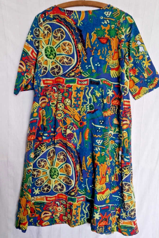 Features: Pockets Colour: Multicoloured Size: 12-14 Brand: Unbranded Material: Cotton Style: Shift Dress Length: Knee Length Department: Women Size Type: Regular