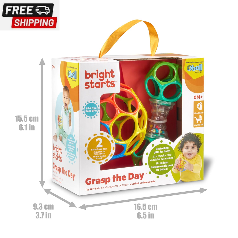 Bright Starts Easy-Grasp Oball Bundle Gift Set - Grasp the Day, Ball and Rattle Toys 2-Pack, BPA Free, Unisex, Newborn+ The Grasp the Day gift set includes 2 bestselling Oball toys from Bright Starts; take on the day with the gift of play! Both beloved Oball toys feature easy-grip details and finger holes for small hands to hold; helps encourage the development of fine motor skills with practice reaching and grasping The included Oball Shaker includes a clear, textured handle with brightly colored beads that babies love to hear and watch; graspable ends made of the highly flexible, durable Oball material The included Oball Classic includes 32 large finger holes complete with a soft, sturdy design for babys small hands; encourages fine motor skills as baby grips, shakes, rolls and more Parents can enjoy peace of mind while baby plays! Made with BPA free materials and easy to wipe clean Unisex, colorful designs provide fun for baby boy or baby girl at home or on the go Take the guesswork out of gifting with the Grasp the Day gift set from Bright Starts! Combining the awesomeness of two beloved Oball toys, this easy-to-pack and easy-to-grasp duo includes the Oball Shaker and Oball Classic. These toys are family favorites for a reason! The shaker introduces cause & effect play with a clear, textured handle and brightly colored rattle beads that babies love to hear and watch. On each end, the rattle is made of flexible and durable Oball material, complete with grip details and lots of finger holes suitable for their small hands. The Oball Classic is a bestselling ball loved by parents, developmental experts, and of course, babies! The toy provides so many play opportunities, from gripping to catching to throwing with ease. Made with the iconic Oball finger holes, this ball toy encourages the development of fine motor skills. Both toys are easy to clean. Simply wipe clean with a damp cloth and mild soap. Theyre also perfect for on the go. Pack along for fun everywhere both toys easily fit in a diaper bag. Both toys are designed for ages newborn and up. Its the ultimate gifting bundle for welcome home baby gifts, baby shower gift ideas, and just-because-I-love-yous! Shipping Fast shipping is very important for us. Our standard US shipping service is FREE. Your order will be shipped within 2-3 business days upon full payment received. Your order will be delivered within 2-3 business days after the handling time. We only ship to the confirmed PayPal address. We reserve the right to cancel any order for any reason at any time. We are not responsible for undeliverable addresses. Returns and payment We offer a 30 days return policy from checkout winning date. We allow only PayPal as payment method FeedBack Your feedback very important to us, after you get your package and you are satisfied with our service please leave us positive feedback If you have any problem with your order / any questions please before leave any type of feedback For any questions, using eBay contact system Please visit our eBay store to check out other items for sale! Thank you for shopping at our store.