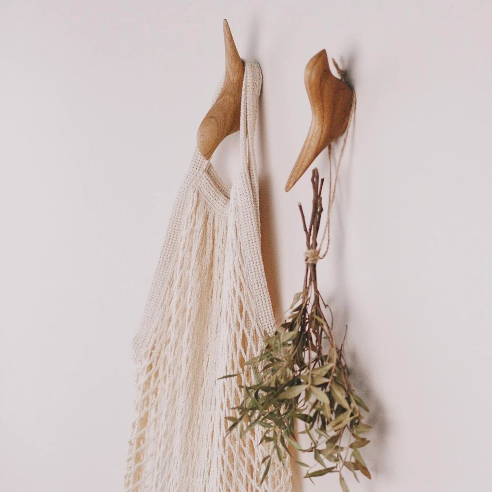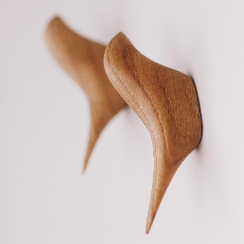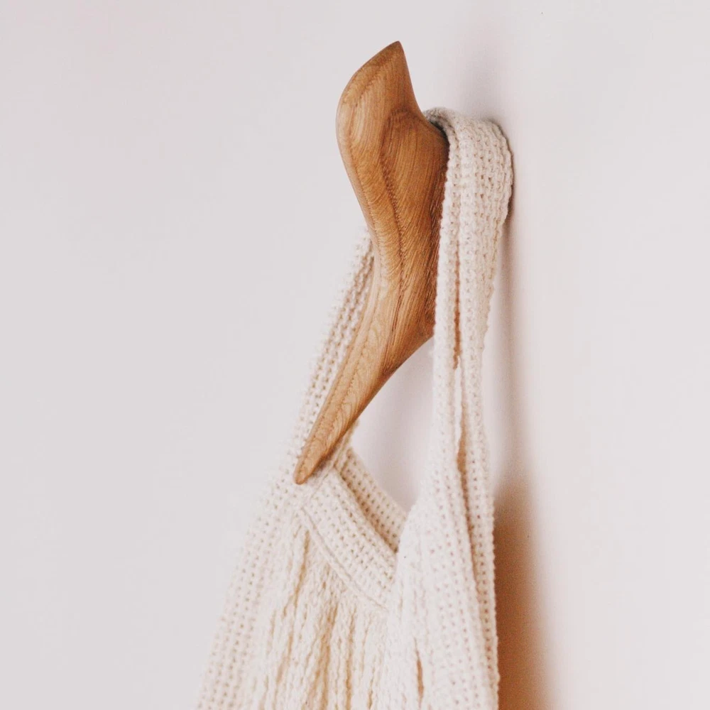Interior wall hooks in the shape of birds are handmade minimalist products made of solid natural oak, which will help to organize the space and bring style and aesthetics to the interior of any home. Thanks to the details, the house becomes cozy and warm. Hooks will become not only unusual and unique, but also a functional element of decor in various places of the house. Wooden hooks in the shape of birds can be placed in any direction and hang objects and things both from the side of the bird's tail and from the side of its head. There are many options for using these wooden hooks: for curtains, for towels in the bathroom and kitchen, for paintings, for decor and just for beauty. The bird-shaped hook is not only practical, but also adds an artistic flair to your home decor. Wooden hooks are attached to the surface without drilling. The hooks have a double-sided self-adhesive base. We recommend attaching the hook to a hard and flat surface, which must first be degreased. After gluing the hook to the surface, leave the hook for 2-3 hours for greater strength of the adhesive bond and only then hang things and objects on the hook. The set includes two wooden hooks. The length of the wooden key in the form of a bird is approximately 4.3-4.7 in. / 11-12 cm. The maximum load on the hook is 10 ounces / 300 grams. The set includes two wooden hooks. Handmade wooden items with love and care.