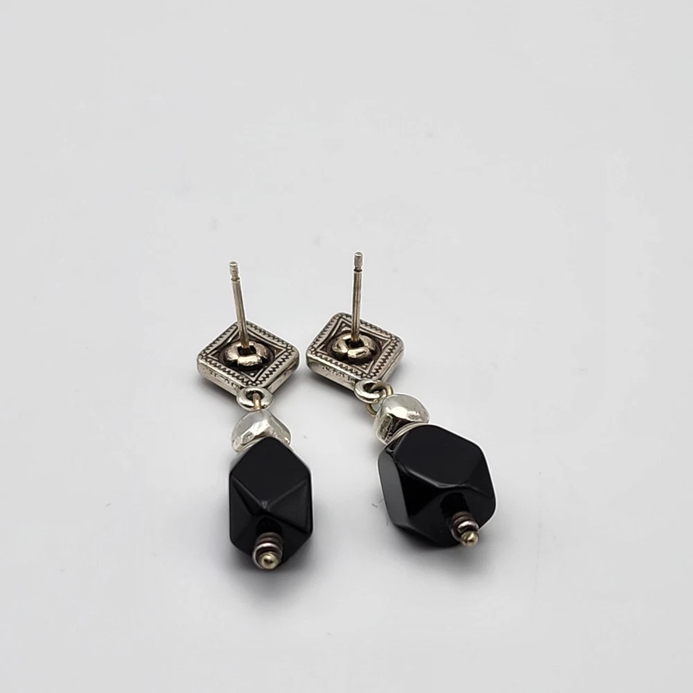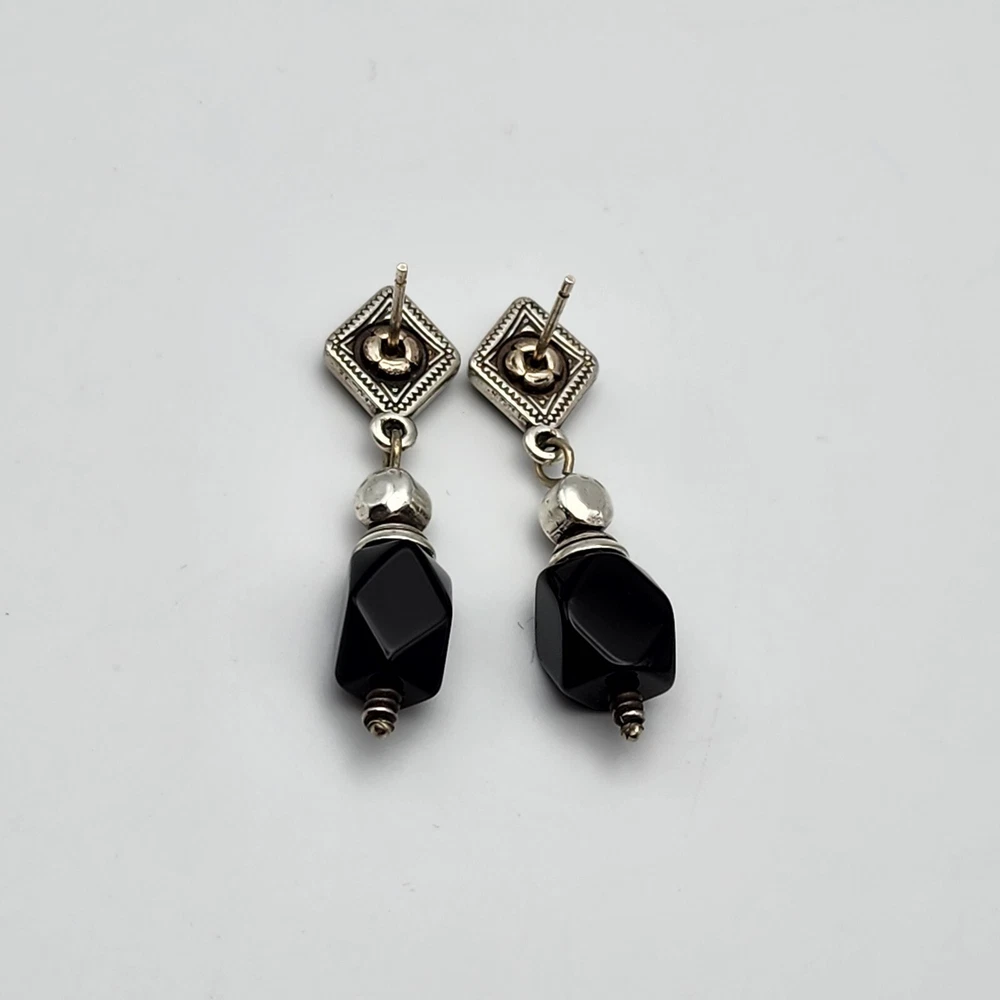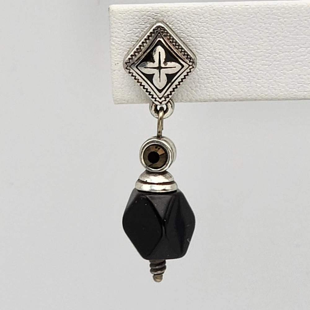 Closure:ButterflyCut Grade:n/agtin13:Does not applySecondary Stone:Crystal, GemstoneColor:Silver, BlackMain Stone Shape:RoundSigned:NoEar Area:LobeMain Stone:Black OnyxSeller Notes:“Good Condition. See Pics For Details.”Metal Purity:UnknownMain Stone Color:BlackSetting Style:n/aAntique:NoCountry of Origin:UnknownStyle:Dangle/DropCountry/Region of Manufacture:UnknownMain Stone Creation:UnknownTheme:BeautyType:EarringsMetal:Silver PlatedVintage:YesBrand:BrightonMaterial:CrystalItem Length:1.5"UPC:Does not applyMain Stone Treatment:Unknown