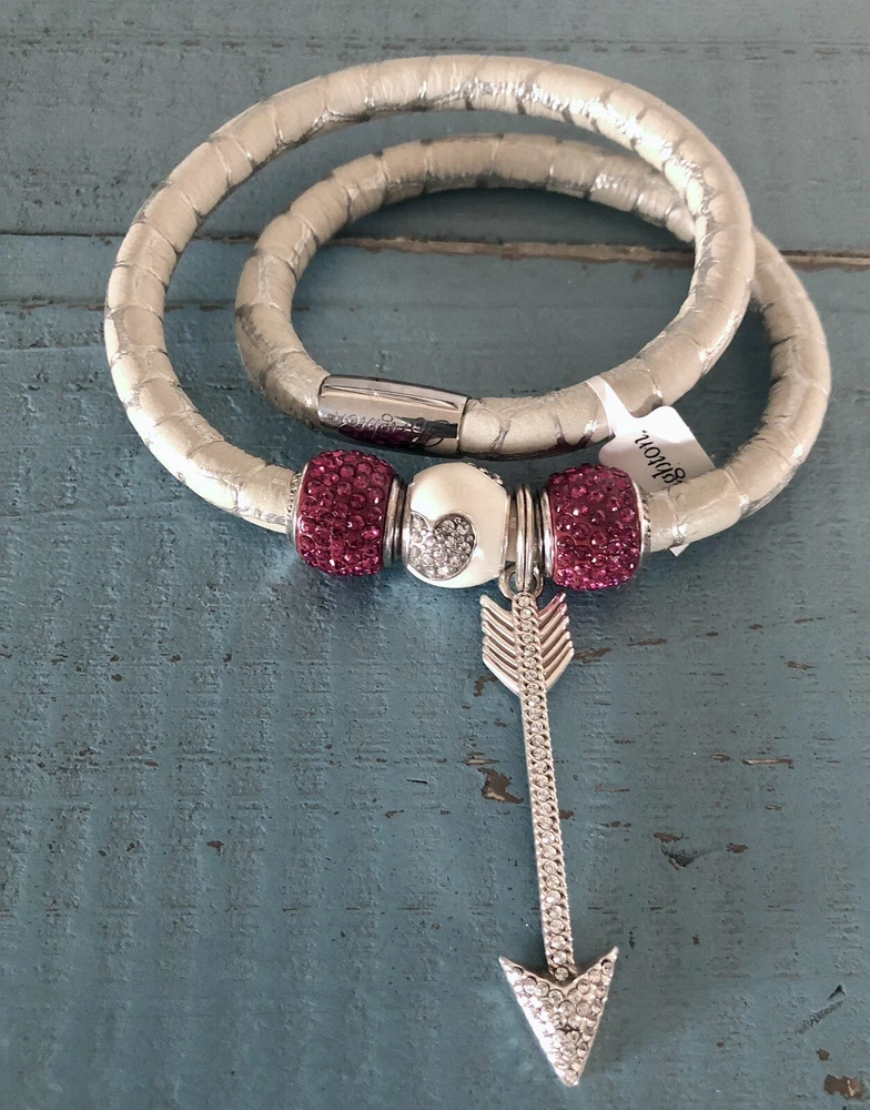 Item Length:8 inMain Stone Treatment:UnknownBase Metal:UnknownGender:FemaleBrand:BrightonMain Stone Shape:Not ApplicableType:BraceletMetal:Silver PlatedFeatures:Magnetic, WrapTheme:LoveNumber of Gemstones:Not ApplicableMaterial:LeatherStyle:Beaded, Charm, MeshCharm Type:SlideColor:ChampagneMain Stone Color:No StoneMain Stone:No StoneSetting Style:Not ApplicalbeSecondary Stone:Not ApplicableCut Grade:Not ApplicalbeClosure:Magneticgtin13:Does not applyShape:RoundUPC:Does not applyMain Stone Creation:UnknownCountry of Origin:Unknownlot:NoMetal Purity:Unknown