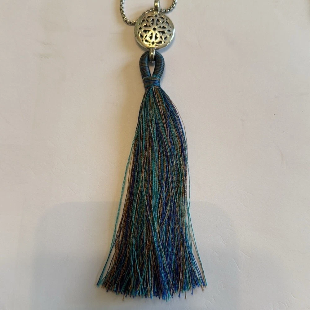 Brighton Jewelry Ferrara Tassel Necklace 19” chain Multi color tassel with silver adjustable chain Pre-Loved -Excellent condition