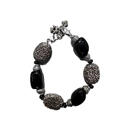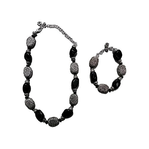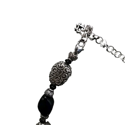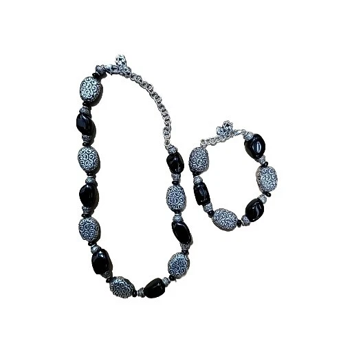 Elevate your jewelry collection with the Brighton Full Moon Rising Silver & Onyx Necklace & Bracelet Set. This set features a beautifully beaded design with a striking black onyx main stone that adds a touch of elegance to any outfit. The pendant shape is a mesmerizing moon that complements the overall design of the set. Perfect for any occasion, this necklace and bracelet set by Brighton is a must-have for any jewelry lover. The silver color of the set adds a touch of sophistication to any outfit. The set is ideal for those who prefer a classic and timeless design. Condition is Original Brand pre-owned (no box only used a few times during a special occasion & event) FREE Domestic Shipping from Florida USA (International buyers pay through eBay Global Shipping Program) Check our store for more similar items at: www.ebay.com/str/balsolent