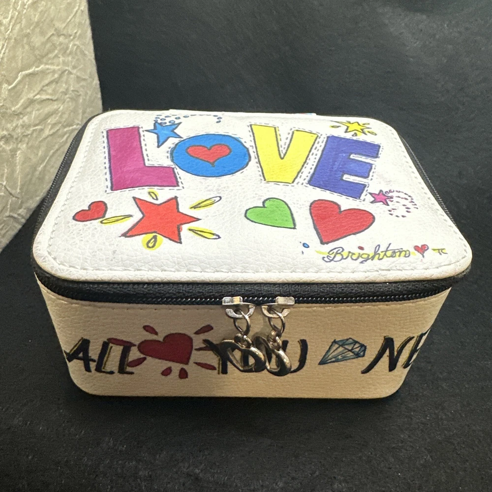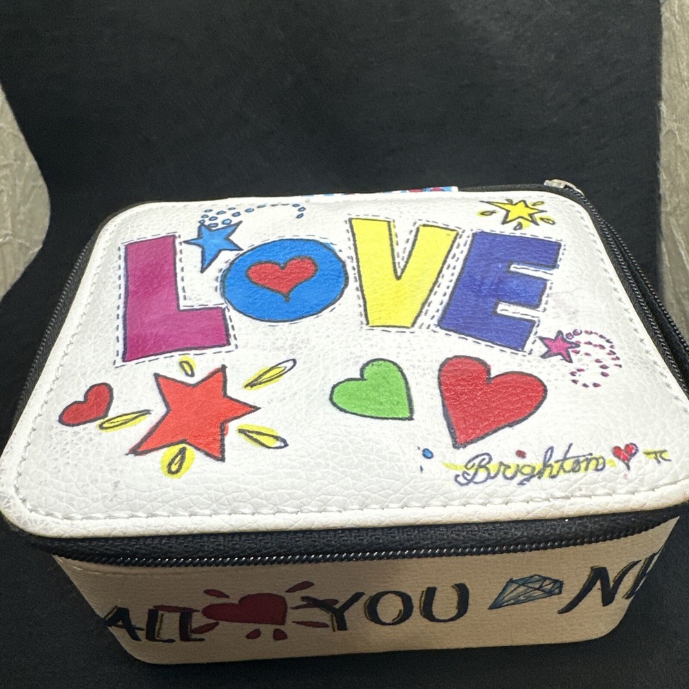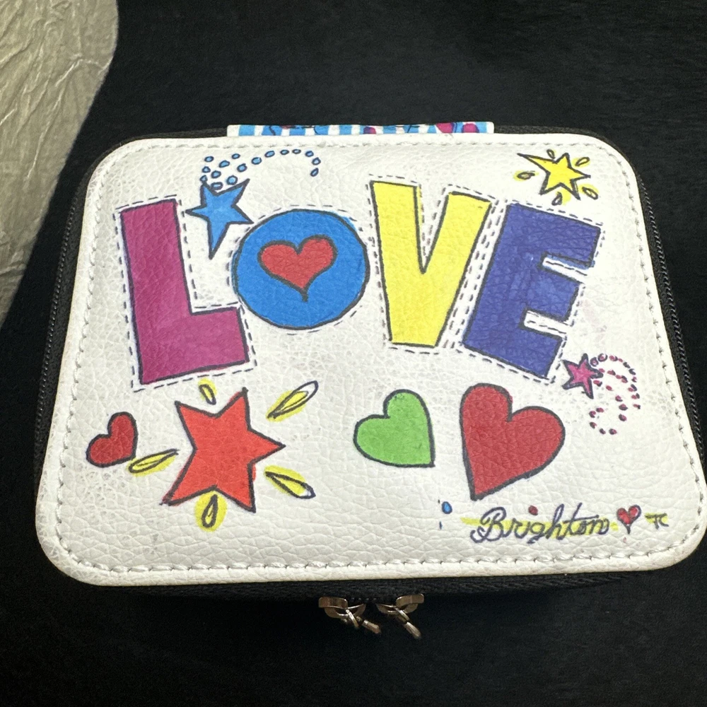 Brighten up your jewelry collection with this exquisite Brighton Jewelry Travel Case. The rectangular shape and multicolor design make it a perfect accessory to bring along on any trip. The theme of "Love" is beautifully displayed on the case, making it a great gift for that special someone. Made of high-quality faux leather, this jewelry box is durable and built to last. It is the perfect size, measuring 5 inches in length and 2 inches in depth. Use it to keep your precious jewelry safe and organized. Get your hands on this beautiful Brighton Jewelry Travel Case today!
