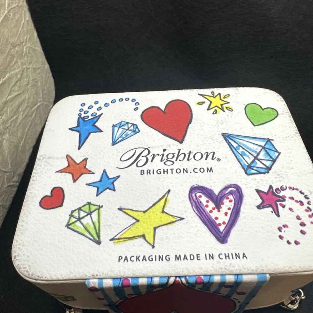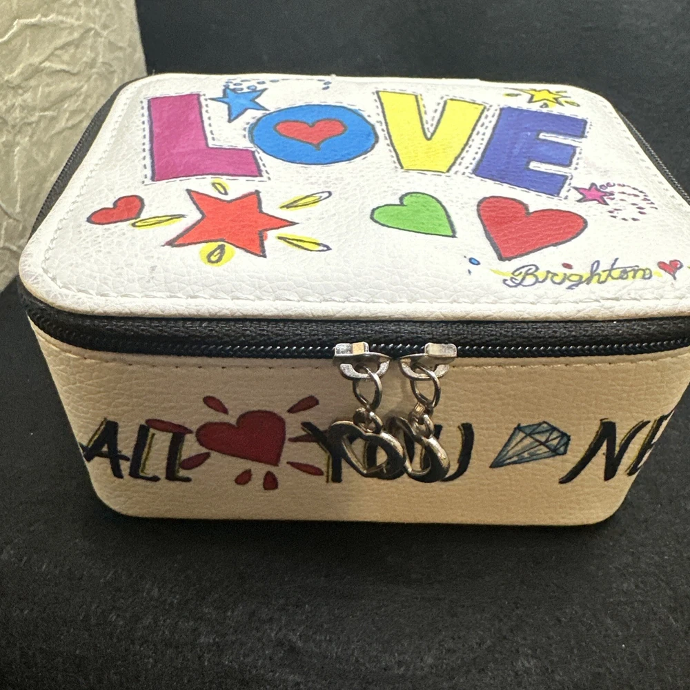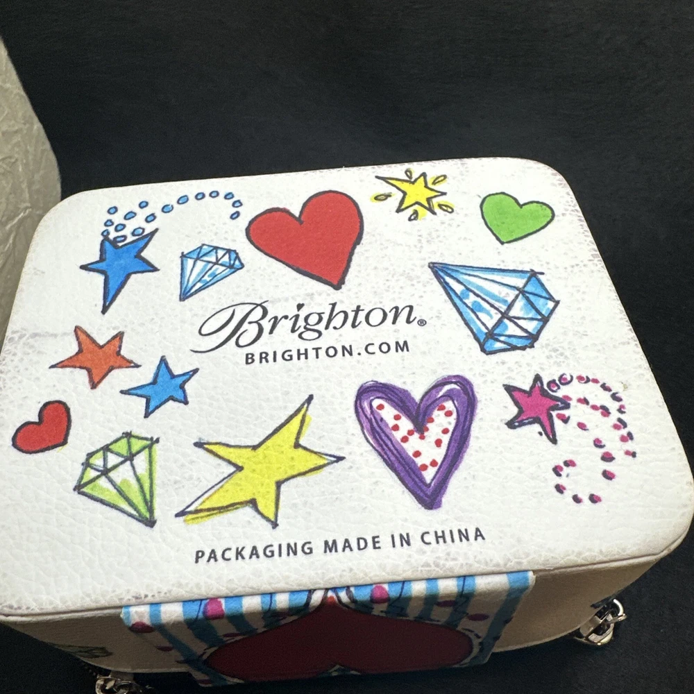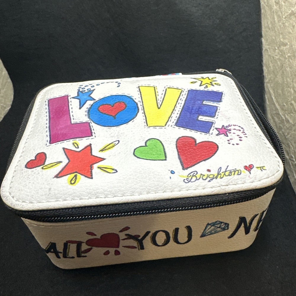 Brighten up your jewelry collection with this exquisite Brighton Jewelry Travel Case. The rectangular shape and multicolor design make it a perfect accessory to bring along on any trip. The theme of "Love" is beautifully displayed on the case, making it a great gift for that special someone. Made of high-quality faux leather, this jewelry box is durable and built to last. It is the perfect size, measuring 5 inches in length and 2 inches in depth. Use it to keep your precious jewelry safe and organized. Get your hands on this beautiful Brighton Jewelry Travel Case today!