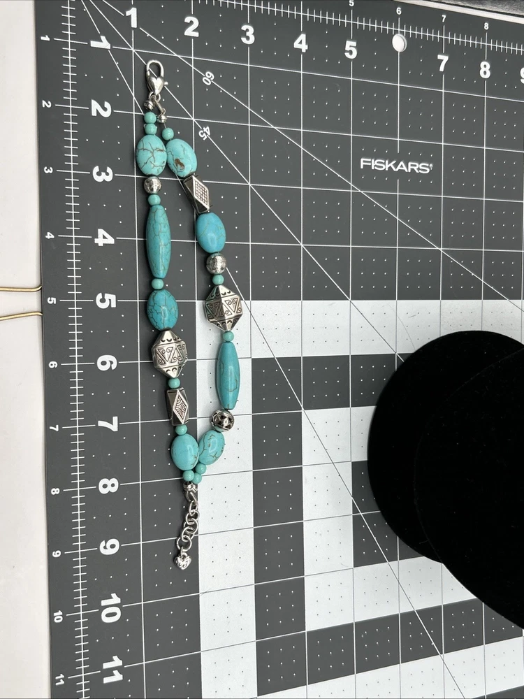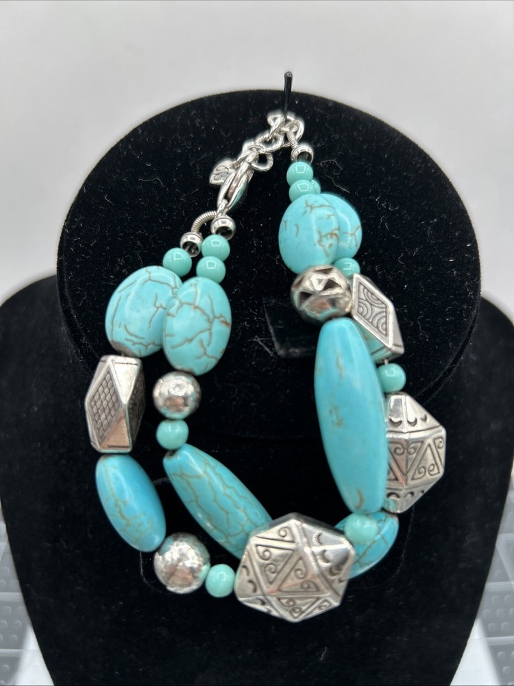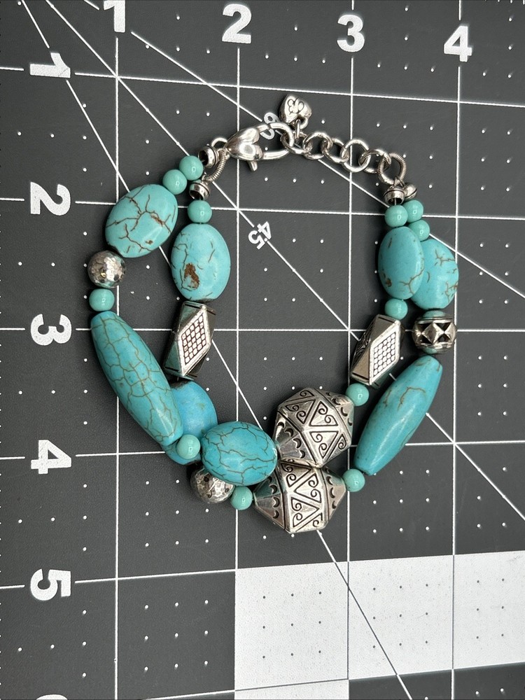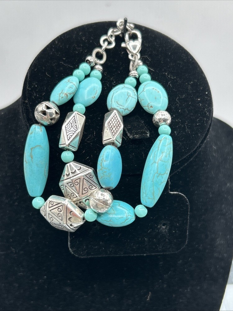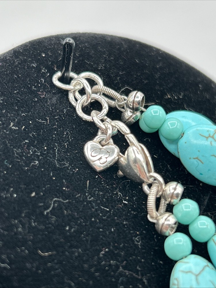 Brighton Mojave Turquoise Silver Tone Bracelet Double Strand Pre-owned. Some wear from age and use as shown. See measurements and pictures.
