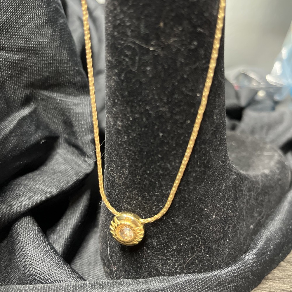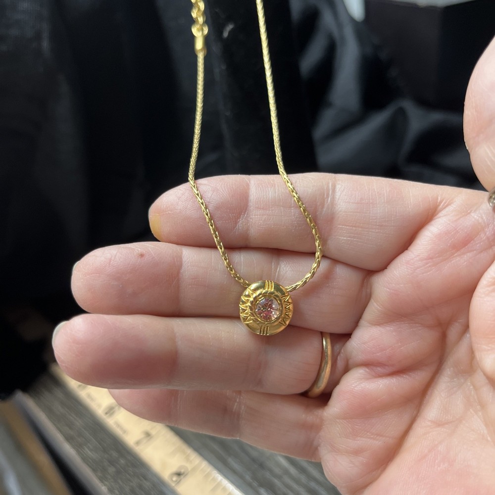 Elevate your jewelry collection with the Brighton Necklace, featuring a petite crystal circle slide pendant that exudes versatility and elegance. The pendant's reversible design allows for two distinct styling options, making it a delightful addition to any outfit. Crafted in a timeless silvertone finish, the necklace measures 16 inches in length and comfortably adjusts to 18 inches, ensuring a perfect fit for your neckline. The piece is proudly signed by Brighton, assuring its authenticity and quality. Its round, clear crystal catches the light beautifully, complementing the sleek lobster closure that secures the necklace with ease. Whether you're dressing up for a special occasion or accenting your everyday look, this necklace is a tasteful accessory that promises to enhance your ensemble.