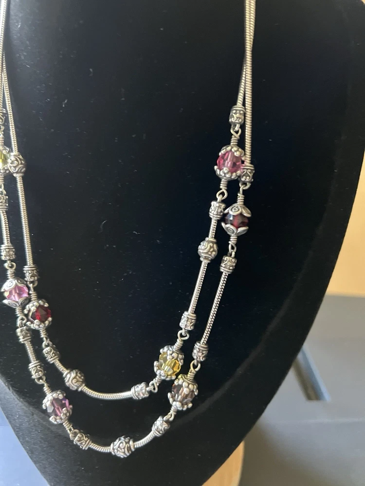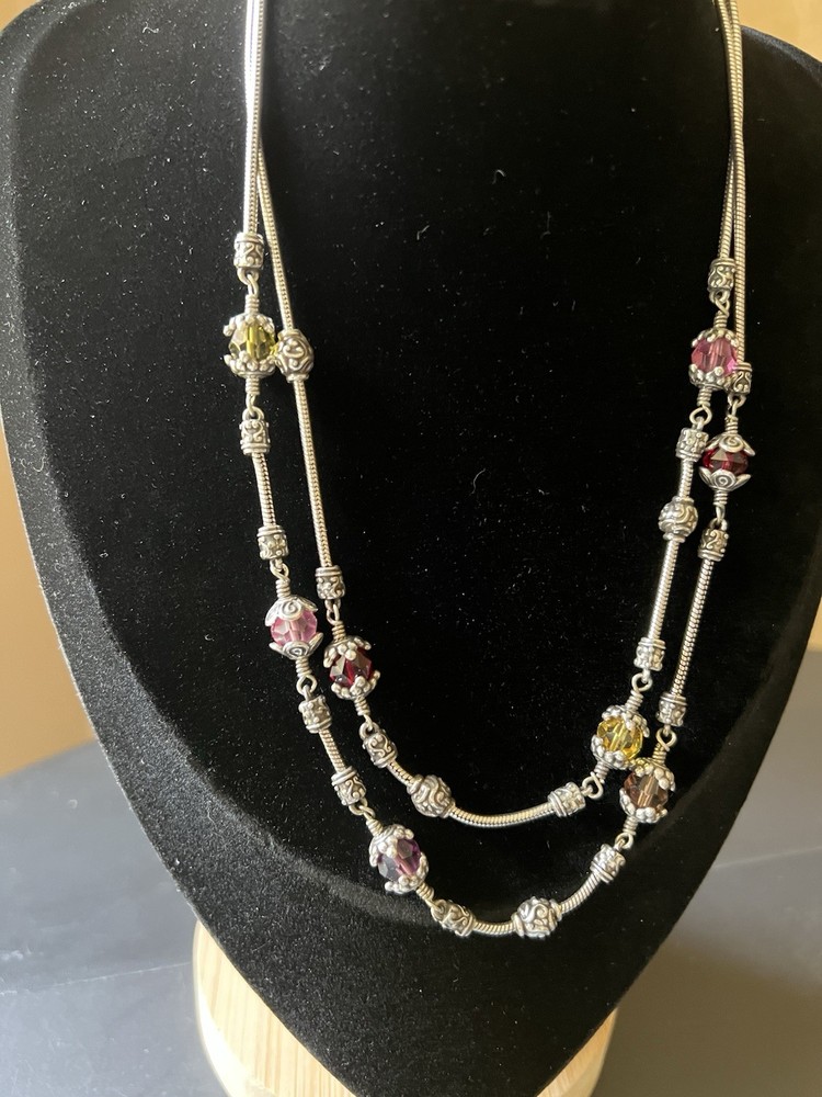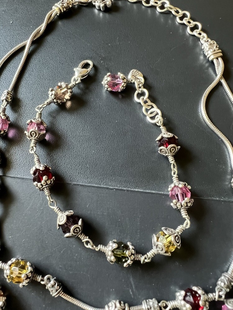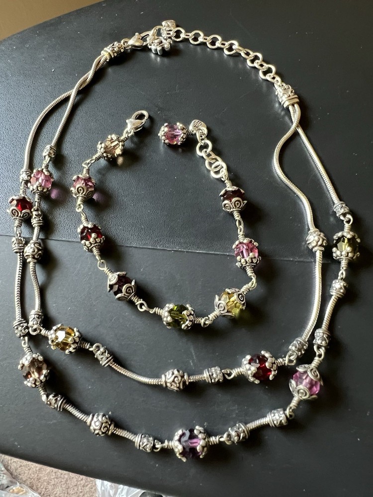 Gorgeous scroll design Brighton necklace and bracelet set. The glass beads are red, yellow and pink faceted ornate design. Necklace with matching bracelet. Excellent condition