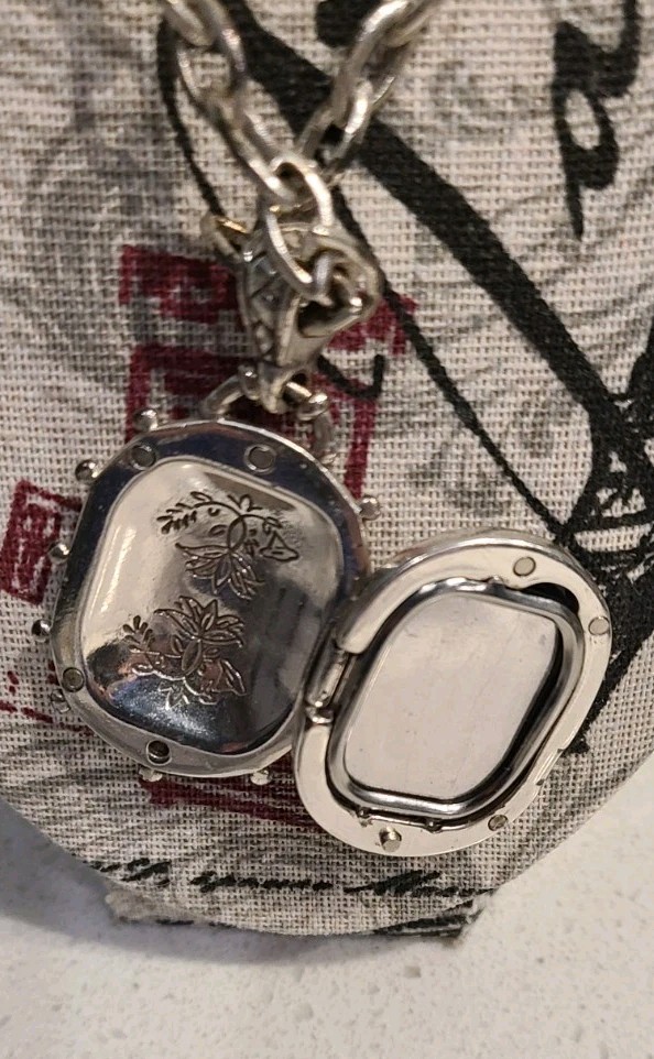 The Brighton Silver Tone Inspirational Quote Locket Pendant Necklace features a beautifully crafted pendant adorned with an inspirational quote by Maya Angelou. This necklace is a stylish and meaningful piece of jewelry that adds a touch of inspiration to any outfit. Perfect for anyone looking to add a touch of positivity and style to their ensemble. add a photo inside of the locker and enjoy! See photos for more.