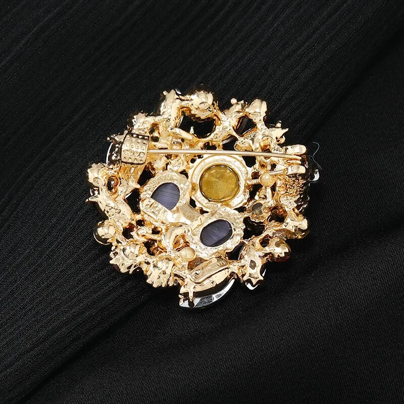 Handmade: No Metal: Zinc Main Stone Treatment: Bleached, Clarity Enhanced Jewelry Department: Fashion Antique: No Main Stone Creation: Natural Wholesale: No Brand: Trsince Country/Region of Manufacture: China Occasion: Anniversary, Birthday, Christening, Christmas, Confirmation/Communion, Engagement, Father's Day, Graduation, Mother's Day, Valentine's Day, Wedding Era: Undated Year Manufactured: 2010-Now Main Stone Length: 0.5 mm Country of Origin: China Shape: Asymmetrical Total Carat Weight: 40g Gemstone Clarity Grade: Loupe Clean Theme: Animals & Insects, Art, Beauty, Biker, Fashion & Costumes, Halloween, Love, Memorial, Western, Holiday Main Stone Width: 0.5 mm Cut Grade: Excellent Base Metal: Brass Vintage: Yes Colored Diamond Intensity: Very Light Main Stone Depth: 0.5 mm Secondary Stone: Imitation Pearl Main Stone Shape: Baroque Main Stone Color: Gold Department: Unisex Adults Setting Style: Cluster Seller Warranty: No Main Stone: Zircon Material: Enamel, Rhinestone Type: Brooch Features: Adjustable Original/Reproduction: Original Customized: No Signed: No