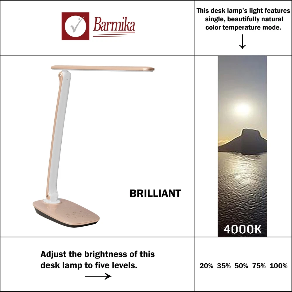 ★ Sleek & Modern Design: The Beige Brilliant LED Desk Lamp combines modern aesthetics with functionality, making it perfect for workspaces, college dorms, or home offices. This cool and cute table light adds style to any environment while providing optimal lighting to reduce eye strain and enhance productivity. ★ Bright & Customizable Illumination: Featuring 5 stepless dimming settings, natural daylight-like color temperature, and a multi-angle adjustable shade, this dimmable LED desk lamp ensures precise lighting for every task. Whether reading, writing, or working on a computer, it delivers the perfect brightness for any situation. ★ Easy & Convenient Operation: Designed with user convenience in mind, the Brilliant LED Desk Lamp includes a touch switch for effortless control and a built-in USB charging port to keep your devices powered. Its versatile and sleek design makes it an excellent choice for college dorms or modern workspaces. ★ Eye-Caring Technology: Protect your eyes with the advanced eye protection features of the Beige Brilliant LED Desk Lamp. Flicker-free, glare-free lighting minimizes eye strain and blue light exposure, while the adjustable shade focuses light exactly where it’s needed. Ideal for students, professionals, or reading enthusiasts. ★ Global Compatibility: The included adapter operates efficiently on 100–240 volts, ensuring reliable performance anywhere in the world. This modern LED desk lamp is perfect for both local and international use. ★ ETL Certified & Guaranteed: The Beige Brilliant LED Desk Lamp is ETL certified for safety and reliability. Backed by a 1-year limited warranty, it’s a smart investment for students, college dorms, and stylish home offices, reflecting ’s commitment to quality and innovation.