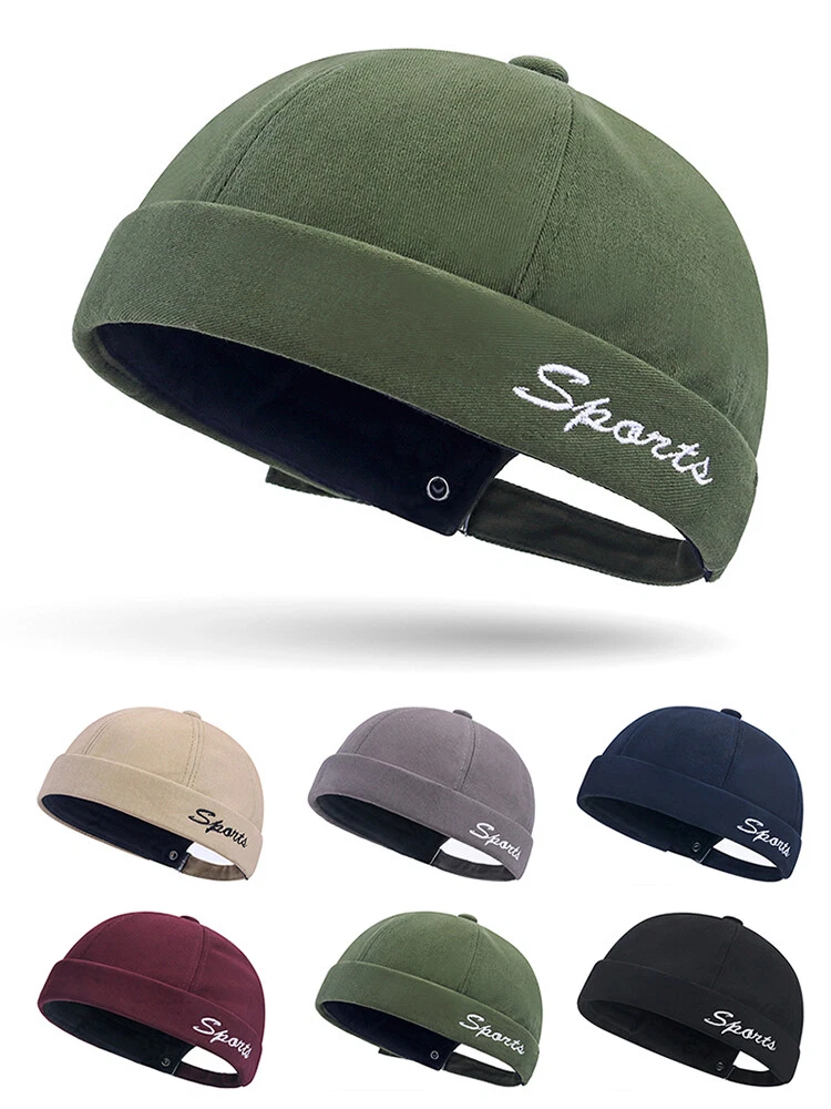 Brimless Docker Cap Hat Skullcap Sailor Rolled Cuff Retro Beanie Hats Adjustable