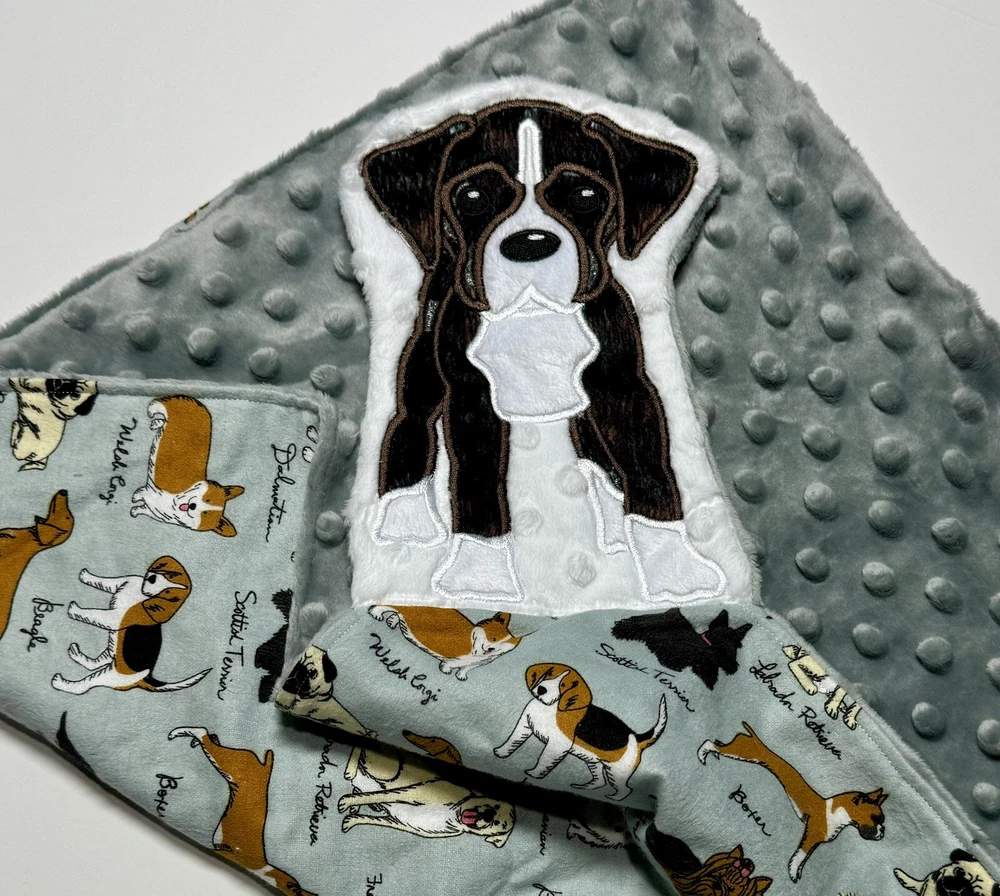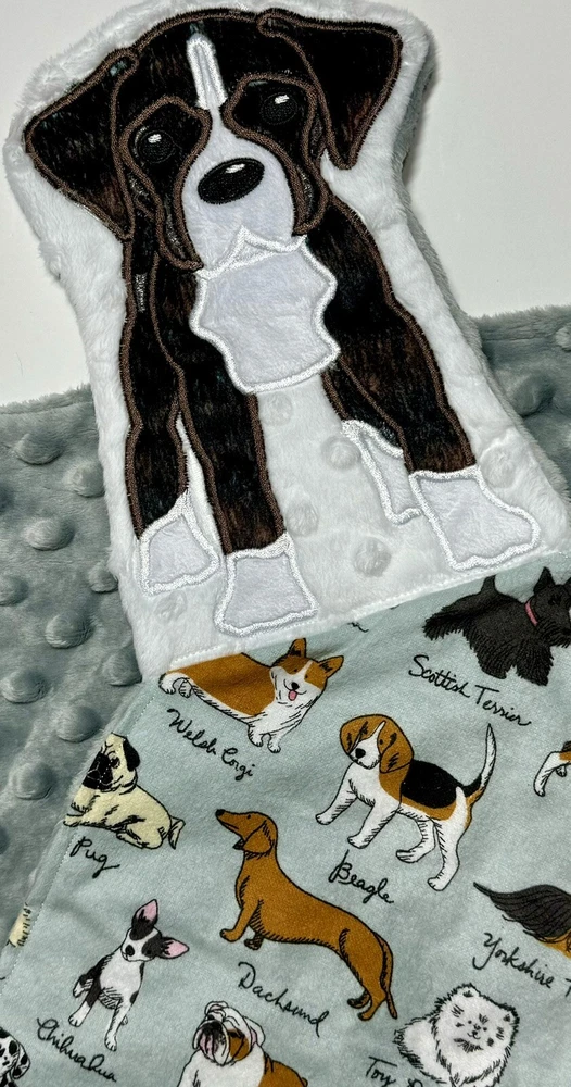 Brindle Boxer Puppy Baby Lovey Security Blanket Appliquéd Flannel Minky Dog
