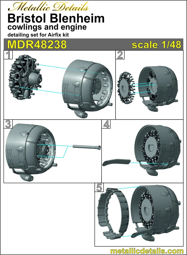 Upgrade set Bristol Blenheim . Cowlings and engines (Airfix) (Detailing sets / Engines, Exterior Details) Scale 1:48 for Plastic Aircraft Model Kit Metallic Details MDR48238 Scale: 1/48 Manufacturer: Metallic Details (Ukraine) Country/Region of Manufacture: Ukraine Condition: New in Box Features: Kit Type: Aircraft Products: Detailing sets / Engines, Exterior Details Recommended kit: Airfix Set contains 3D-printed parts for detailing of cowlings with Bristol Mercury engines for the aircraft model Bristol Blenheim (Airfix). “The Bristol Blenheim – a British light bomber, designed and built by the Bristol Aeroplane Company. Produced: 1937-1958. Operators: Australia , Canada , Croatia , Finland , France , Greece , India , Indonesia, New Zealand , Poland , Portugal , Romania , South Africa , Turkey , United Kingdom , Yugoslavia.” ---------------------------- If you have a desire to procure a GREATER NUMBER OF ITEMS THAN WHAT IS CURRENTLY DISPLAYED, kindly let us know, and we will happily modify our offerings to suit YOUR EXACT QUANTITY NEEDS. ---------------------------- >>> Visit our eBay store! <<< You will find everything you need at great prices. Scale model accessories are a wide range of parts, spares, and components that can help you make your model even more realistic and detailed. In our catalog, you will find everything you need to assemble and repair model cars, airplanes, ships, tanks, and weapons. Our accessories are made from high-quality materials and meet all standards. We offer a wide range of models and sizes so you can find what you need. Buy scale model accessories in our store and make your model even more unique!