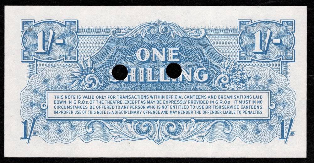 British Armed Forces 1 Shilling 3rd Series Special Voucher – UNC Hole Cancelled British Armed Forces 1 Shilling 3rd Series Special Voucher – UNC Hole Cancelled Offered here is an original British Armed Forces 1 Shilling Special Voucher , 3rd Series. These notes were issued for use within official British military canteens and authorized establishments overseas. They were not legal tender for public circulation and were restricted to service personnel. Printed by Thomas De La Rue & Company, Limited, London , these vouchers are a popular collectible among military currency specialists. Note Details: Issuer: British Armed Forces Series: 3rd Series Denomination: 1 Shilling (1/-) Printer: Thomas De La Rue & Co., London Two-hole punch cancellation (official control/redeemed issue) Condition: This example is Uncirculated . Crisp, original paper Bright color and sharp detail Excellent margins No folds observed Hole punch cancelled (standard for issued examples) The cancellation punches are typical for British Armed Forces vouchers and do not represent damage. Please review the photos carefully for your own grading standards. Collector Appeal: An attractive uncirculated example ideal for: British military currency collectors Commonwealth paper money specialists Military voucher collectors Type set collectors A sharp 3rd Series British Armed Forces 1/- Special Voucher with strong eye appeal and full originality. The item you see pictured here is the exact item you will receive unless otherwise stated in the description above. We offer FREE domestic shipping with tracking. We accept returns within 30 days of delivery. Please see our Policies below for more information on returns. If this listing has the Best Offer option, then we are willing to listen. Make an offer via eBay’s “Make Offer” button. If there is no “Make Offer” option, then this our best price. We will do our best to respond to questions and/or offers as quickly as possible. For information regarded sales tax and how it might affect your purchase, please see our polices below. S.G. Rare Coins Inc. Polices: SHIPPING : USPS First Class * OR * USPS Priority Mail, Insured and signature required (depending on value). We ONLY ship to the buyer's address that is pre-registered with eBay at the time of purchase/checkout. Any request to ship to an address other than the registered address will be denied and reported to eBay. Orders are generally processed within 1 business day unless otherwise noted or on Time Away. Please allow extra handling time when noted as we occasionally travel to trade shows. Every effort will be made to process your order within a timely manner. TRACKING: Provided for every shipment. Please see your order for the tracking number. Tracking information can take up to 24 hours to show after label is created. INTERNATIONAL ORDERS: The coins and currency categories are NOT currently available for international shipping on eBay's International Shipping Program. Unfortunately, SGRCI does NOT ship outside of the United States at this time. Any request to ship outside of the US will be denied. RETURNS: We accept returns within 30 days of delivery, however, we may issue a partial refund based on current market value at the time of return. PLEASE NOTE : Do not use the eBay return reason "didn't match description or photos" as certified coins and currency have serial numbers which can be authenticated by the eBay approved third-party grading services. If the wrong reason is used to return an item, Sellers are charged with a defect which can cause our eBay fees to increase. This would force us to raise our prices. Please help us keep the prices as LOW as we can! In the unlikely event we shipped the wrong item, the item was damaged during shipping, or we had the wrong photo with the listing, you are welcome to use the appropriate return reason. If the return policy is misused however, you will be reported to eBay. NON-PAYMENT : If payment has not been received after 4 days of purchase/end date of auction and customer has not made other arrangements, we reserve the right to cancel the transaction. SALES TAX: eBay now collects sales tax directly for many US States. Based on the current applicable tax laws, eBay will calculate, collect, and remit sales tax on our behalf (as well as other sellers and registered dealers) for the affected, respective states. We do not calculate, receive or remit the sales tax for any of our transactions . It is all done automatically by eBay. For more information on the new tax laws, please click here . Registered dealers should contact eBay and fill out the proper forms for tax exemption. Please contact eBay directly if you have any questions in regards to sales tax. FRAUD: We reserve the right to cancel any transaction in which fraudulent persons, activities, or funds are suspected. No partial payments, multiple payments, layaway or overpayments will be accepted. PRICES & OFFERS: Auctions and Buy It Now prices are our best prices. Pre-haggled for your convenience! We do our best to consider all reasonable offers, however, we work on extremely close margins. If your offer is not reasonably close to our Buy It Now price, we probably won't be able to make a deal. If you would like an explanation of the value of any item, we would be happy to provide one. POP / POPULATION & PRICE GUIDE INFO are provided at the time of the listing's creation or original start time. We encourage you to double-check independently as populations and price guides are subject to change. SEE AN ERROR? Please let us know! We are human and make occasional mistakes. We would never intentionally list something incorrectly or misleading. QUESTIONS? Please contact us with any questions or concerns. We are always happy to help! Salvatore Germano PNG #481