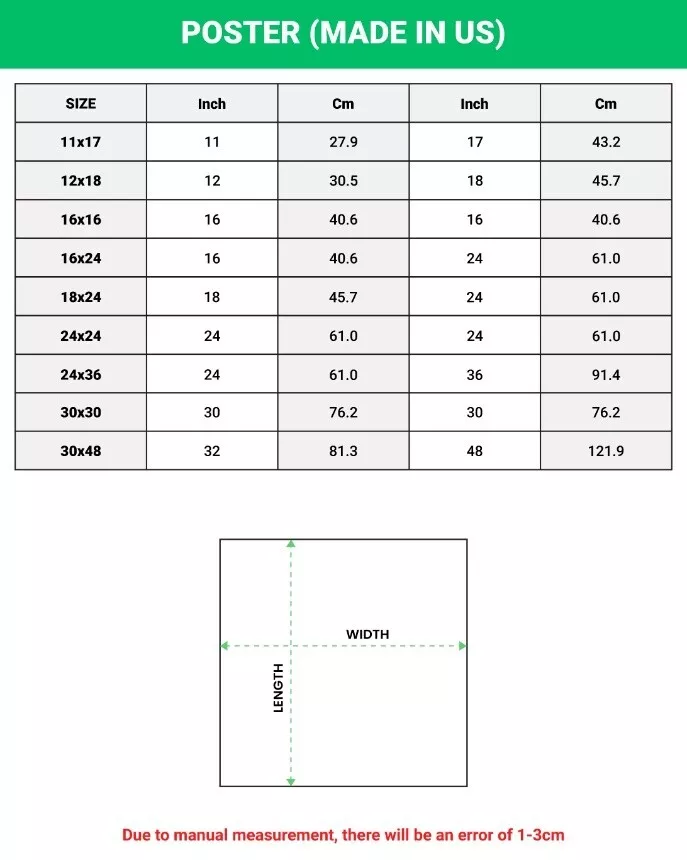 PRODUCT DETAILS Make your room more colorful and add characters to your space with this simple custom Poster. Made from high-quality paper, our posters are perfect to hang on the wall. You can easily decorate any space from a party, bedroom, bathroom, kids? room, living room, office, dorm, and more with our print-on-demand poster without a frame. High-quality resin-coated photo-base paper. Satin photo finish, maximum color gamut, dmax, and image resolution. Heavyweight (230 gsm); 9 mil base. Ships in protective tubes. Lasts 95 years inside. 5 years in direct sunlight.