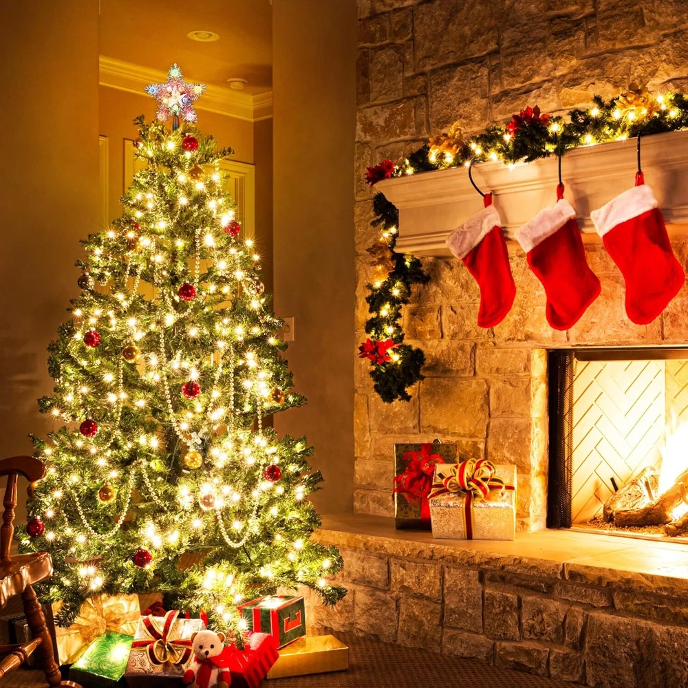 BrizLabs Christmas Star Treetop 1 Pack, Multicolor Topper With Tinsel Product Details Item Weight: 6.4 ounces Package Dimensions: 8.98 x 8.11 x 2.32 inches Size: 1 Pack Color: Multicolor Star Topper With Tinsel Style: Classic Style Batteries Included?: No Batteries Required?: No Shiny Reflective Foil Fringe Treetop Lights: Shiny light up topper, with 11 replaceable multicolored mini lights and numerous tinsels surrounding, classic style, creating a colorful bling bling vision, which is an ideal and considerable Xmas decorations gift for family, relatives, friends, colleagues or yourself. Replaceable Parts: This tinsel tree topper with built in 11 replaceable clear light bulbs, which will be more brighter than before during night lighting. Spare parts will be more important in lighting showing, 4 bulbs and 2 fuses spare included for supporting normal operation. Delicate Christmas Craft: The treetop star is eye-catching in day and nighttime showing, especially the piercing stars and classic patterns can form a different and amazing view and enhance the festival mood. The bottom of the star-shaped tree top is hollow diameter is 1.18 inches. You can easily place it to most of the size of the Christmas tree without any other tools. , May this starry light bring you good lock and health Wide Decorative Applications: This shining star lighted tree top will be perfect for decorating in Christmas party, shopping center, home, park, garden, yard, cafe, pub, bistro, bar, restaurant, office, supermarket, shopping mall, hotel, Halloween, Thanksgiving, New Year, birthday party, wedding, anniversary, ceremony, evening party etc No Christmas tree is complete without a beautiful star on top! And our gorgeous star Christmas tree top is your best choice based on the following advantages: 1. Five-point star tree topper, traditional and delicate, highlights a glittered surface with winding silver wire with built-in soft glowing lights. So it is the ideal way to complete the decoration of your Christmas tree and light up the Christmas spirit! 2. Pre-lit star tree topper, with 11 count incandescent lights, light up pretty with your Christmas lights on the tree, adding a Christmas atmosphere! 3. Upgraded glitter surface with built-in lights design, shining beautifully! 4. UL certified, safe and durable! 5. Green base and lead wire with glittered silver finish, perfect matches your Christmas tree and 2.5ft lead cord allows easy connection with Christmas lights. 6. Easy assemble in minutes, just stick the base of the star into the top of the tree, adjust the angle to keep it upright, connect the plug with the end connector to Christmas lights on the tree (not to exceed 210 watts), done! Specifications: Lights Color: Warm White Wire Color: Green Wire Light Quantity: 11 Counts Base Diameter: 1.18in Length Between The Plug and Star: 2.5ft Package Included: 1 x Star Christmas Tree Topper 2 x Spare Bulbs 1 x Fuse