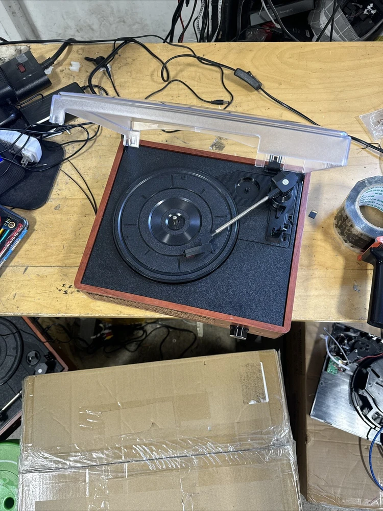 Home(Brn)open Box Bluetooth Turntable Vinyl Record Player with Speakers 3 Speed