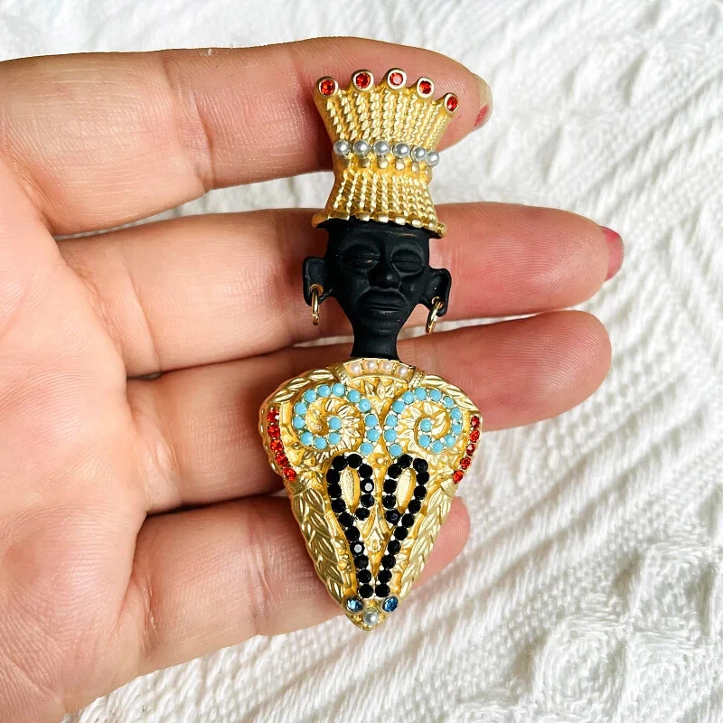 Broche Jefe Tribal Retrato Negro Exótico Rey Egipcio Prendedor Perla Medieval