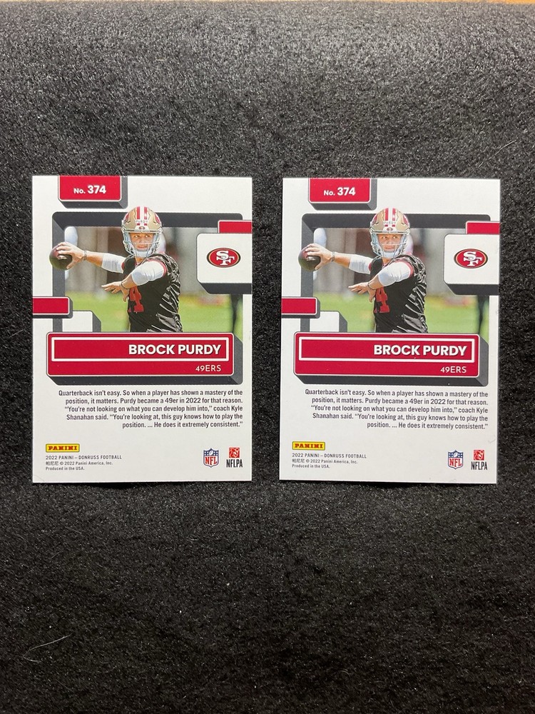 BROCK PURDY RATED ROOKIE LOT (2) RC #374 2022 PANINI DONRUSS FOOTBALL SAN FRANCISCO 49ERS