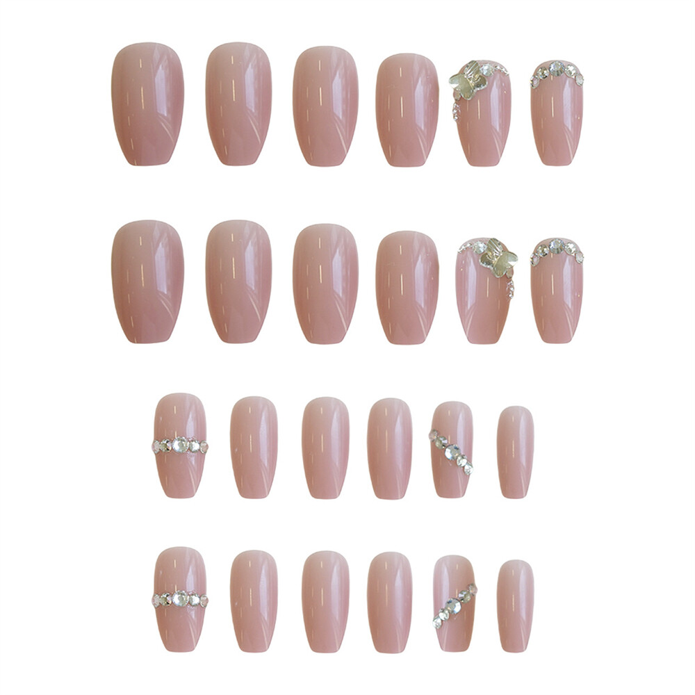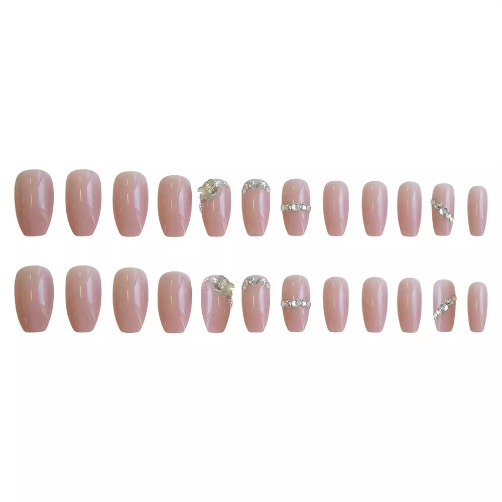 Broken Diamond Short Coffin Press On Nails Glossy Nude 24pcs