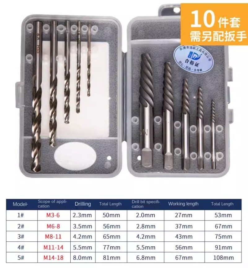 Broken wire extractor specialized for removing screws with broken heads, broken screws, sliding wires, and universal thread removal Weight:370g