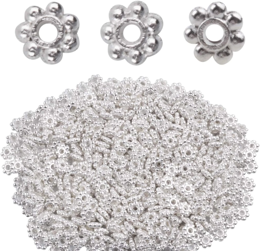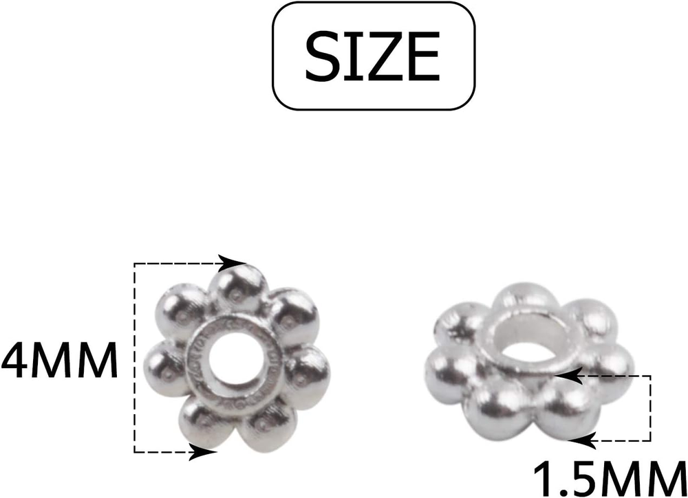 Shape or Style:Beautiful Daisy. Indispensable jewelry component accessories beads, spacer beads. Good accessories for you to diy what you like,such as bracelet, anklets and some other handicraft works. Size: 4mm in diameter, 1.5mm thick, with a 1.5mm hole;Material: Metal; Include of Package: 500 x Christmas Snowflake Silver Spacer Beads. Color: Silver. Diameter: 4mm. Quantity: approx 500pcs. Create beautiful and unique jewelry findings and beads for making your own necklaces, bracelets, charms, and earrings.
