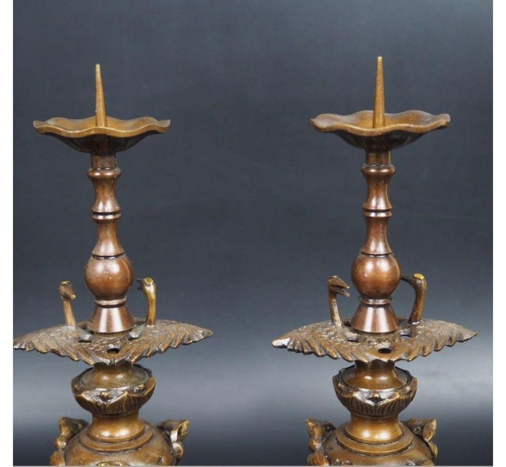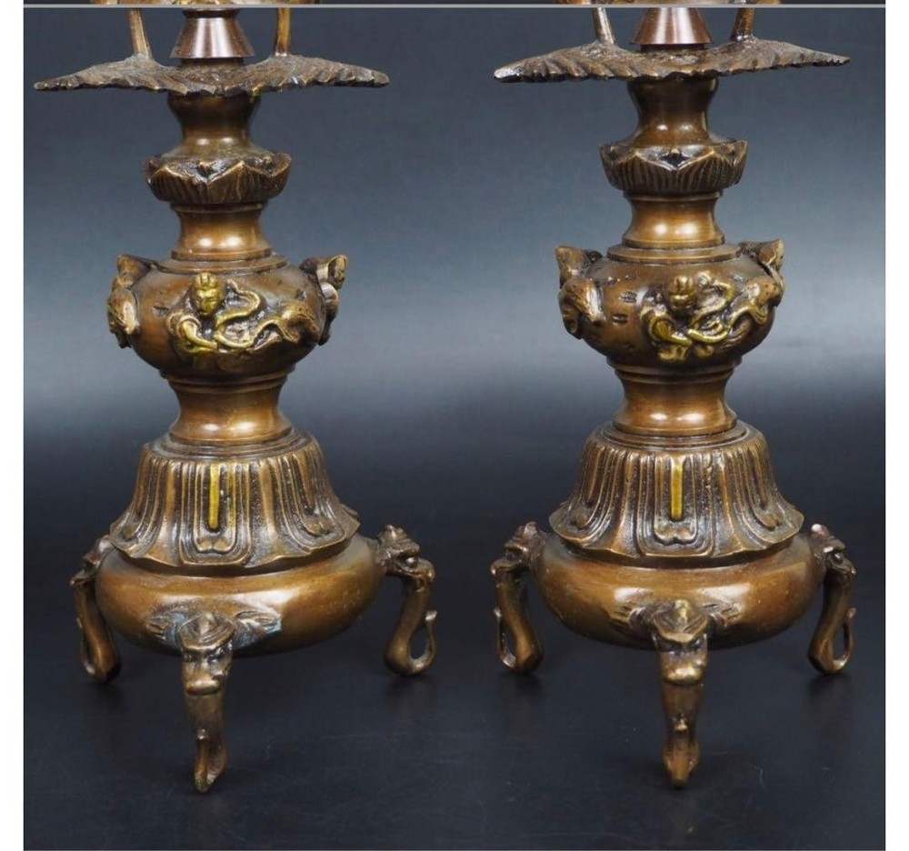 Item Title Japanese Vintage CANDLESTICK Buddhism Bronze Candle Stand 10.8 inch Ornament Description Height: 10.83 inch Please refer to the image for the detailed condition of the item.Please feel free to contact us if you have any concerns, such as the condition is difficult to understand by looking at the image. We will do our best to answer your question kindly and politely. Payment Supports managed payments Please pay within 5 days after auction is finished. About Us We are located in Japan. It's our pleasure to make you happy by proposing our recommend item. If you have any questions or request about items, please feel free to ask us. International Buyers - Please Note: -Import duties, taxes, and charges are not included in the item price or shipping charges. These charges are the buyer's responsibility. -Please check with your country's customs office to determine what these additional costs will be prior to bidding/buying. -These charges are normally collected by the delivering freight (shipping) company or when you pick the item up - do not confuse them for additional shipping charges. -We do not mark merchandise values below value or mark items as - gifts - The US and International government regulations prohibit such behavior. Thank you for your understanding.