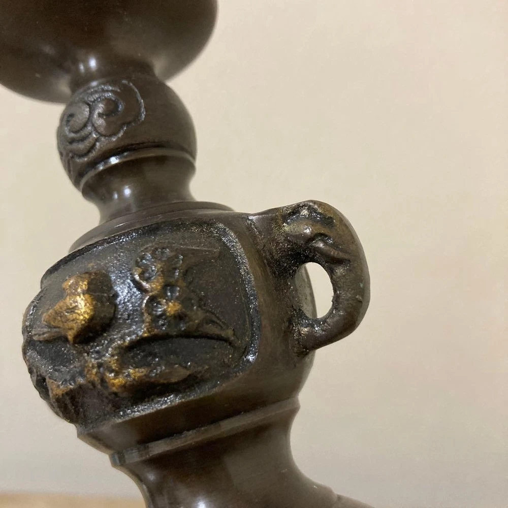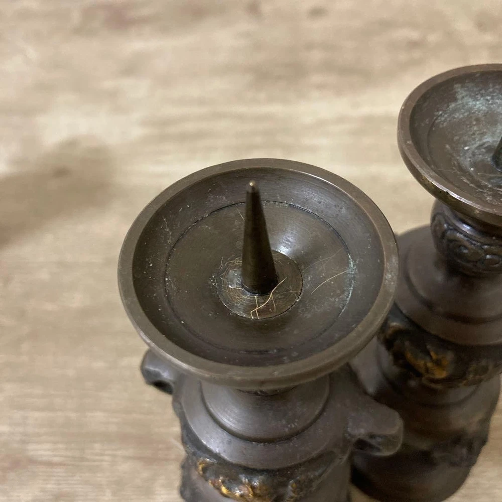 Vintage Japanese Bronze Candle Stand Pair CANDLESTICK Buddhism Ornament 6.1in Vintage Japanese Bronze Candle Stand Pair CANDLESTICK Buddhism Ornament 6.1in Description SIZE Height: 6.1 inch Width: Length: In most cases, accessories shown in the photos (such as stands or original storage boxes) are not included with the item. If any accessories are included, this will be clearly stated in the item title. For details regarding the item’s condition, please refer to the photos. If you have any questions or if the condition is difficult to judge from the images, feel free to contact us. We are happy to assist you and will respond kindly and promptly. Payment Supports managed payments Please pay within 5 days after auction is finished. About Us We ship worldwide. Feel free to ask any questions in English, German, French or Spanish. We are located in Japan. It's our pleasure to make you happy by proposing our recommend item. If you have any questions or request about items, please feel free to ask us. International Buyers - Please Note: -Import duties, taxes, and charges are not included in the item price or shipping charges. These charges are the buyer's responsibility. -Please check with your country's customs office to determine what these additional costs will be prior to bidding/buying. -These charges are normally collected by the delivering freight (shipping) company or when you pick the item up - do not confuse them for additional shipping charges. -We do not mark merchandise values below value or mark items as - gifts - The US and International government regulations prohibit such behavior. Thank you for your understanding.