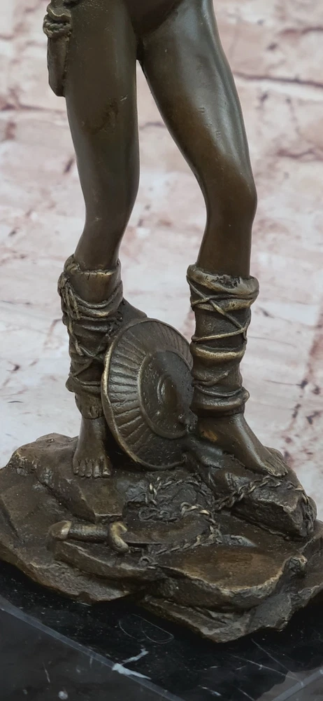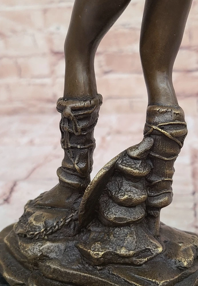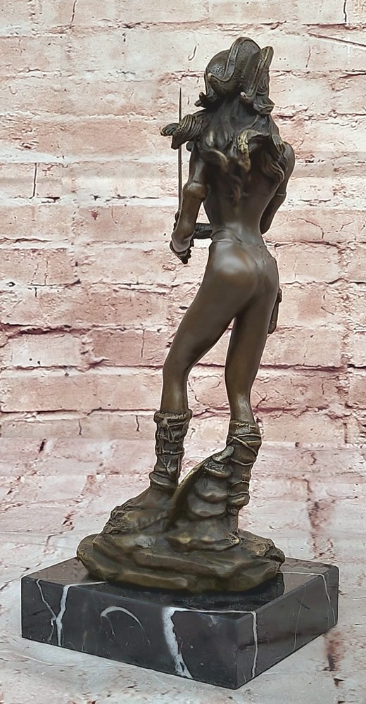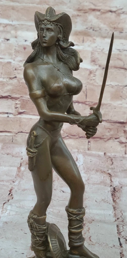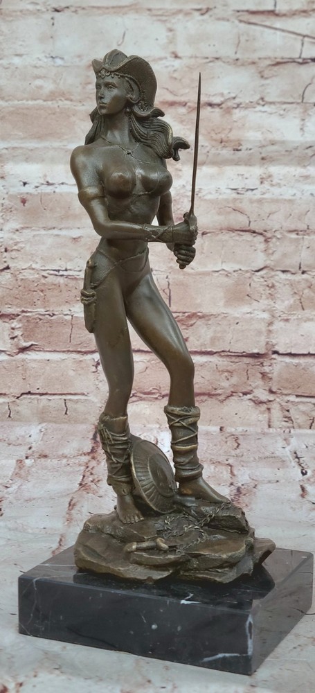Condition : This sculpture is in perfect condition. Bronze Dimensions with Marble Base: Height 12" X Width 4 1/2" Marble Dimensions:4 1/2" X 4 1/2" Height without base:11" Weight:10 LBS Inventory:47Y7114074 Embrace the power and allure of our striking Amazonian warrior bronze sculpture. Strong, skilled, and undeniably sexy, she exudes a fierce presence, ready to face any opponent with her sword in hand. Standing tall and fit, her womanly curvaceous figure adds a touch of femininity to her formidable stance. With an intriguing helmet headpiece adorning her head, her minimalistic yet captivating outfit emphasizes her confidence and strength. Poised to swing her sword with full force, her shield rests at her feet, a testament to her readiness for battle. The sculpture was meticulously crafted using the revered lost wax method, ensuring every detail is captured with authenticity and precision. Resting on a sleek black square base, this masterpiece bears the signature of the renowned artist Aldo Vitaleh, a symbol of its genuine artistry and craftsmanship. This Amazonian warrior bronze sculpture is a captivating tribute to the warrior spirit and the beauty of feminine strength. Whether displayed as a focal point in your home or as an eye-catching addition to an art collection, it is sure to command attention and admiration. Celebrate the essence of power and allure with this exceptional artwork, a true representation of an indomitable warrior in the world of bronze. Handmadenbsp;Vitaleh Original Bronze Sculpture Female Amazon Warrior Marble Figurenbsp; Video will open in a new window Using the eBay App? Paste link into a browser window: [isdntekvideo]