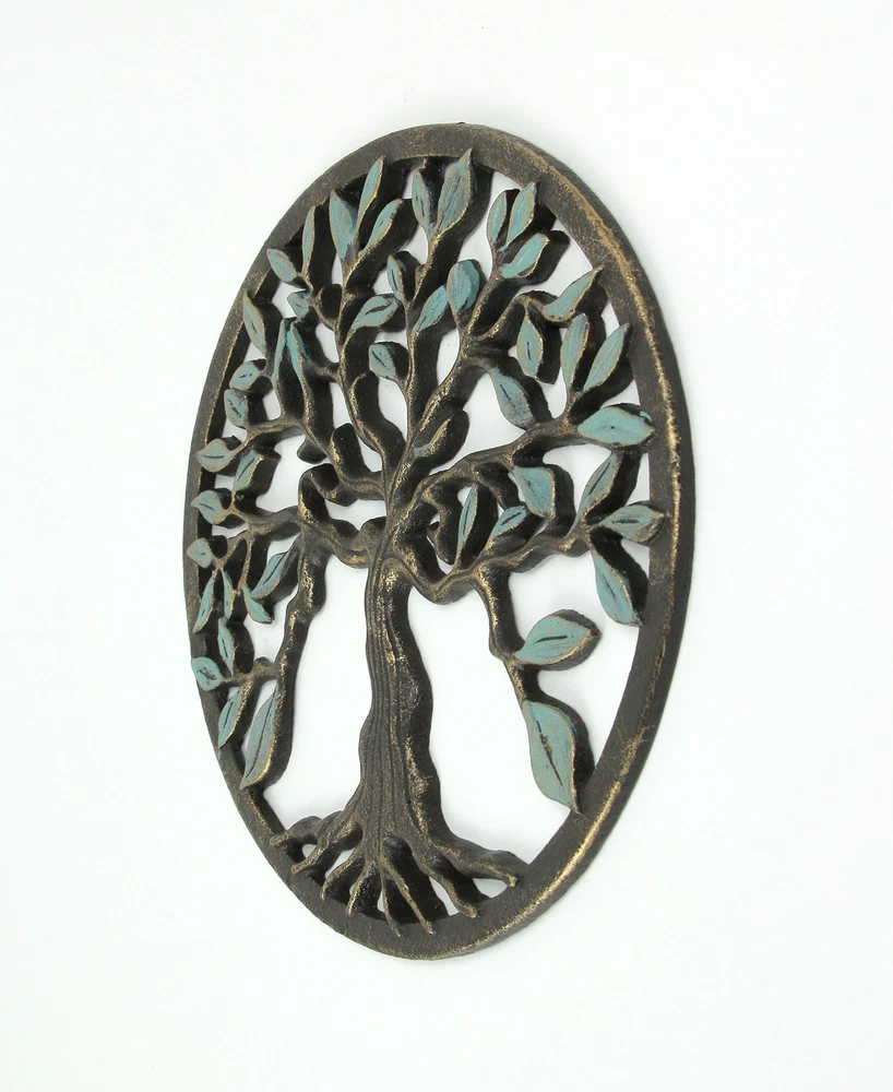 Perfect Dimensions - This Tree of Life wall sculpture measures 11.75 inches in diameter and 0.25 inches thick, ensuring a prominent and eye-catching presence on your wall. Long-lasting Quality - Crafted from high-quality cast iron, this decorative piece is designed to endure both indoor and outdoor environments, promising years of durability and beauty. Antique Charm - Adorned with a metallic bronze and verdigris coating, this sculpture exudes rustic elegance, adding a touch of vintage charm to your home or outdoor space. Our eBay Store About Us Add to Favorite Sellers Bronze and Green Finish Cast Iron Tree Of Life Wall Décor Sculpture 11.75 Inch Diameter - Elegant Nature Themed Decorative Plaque - Easy Install Perfect Dimensions - This Tree of Life wall sculpture measures 11.75 inches in diameter and 0.25 inches thick, ensuring a prominent and eye-catching presence on your wall. Long-lasting Quality - Crafted from high-quality cast iron, this decorative piece is designed to endure both indoor and outdoor environments, promising years of durability and beauty. Antique Charm - Adorned with a metallic bronze and verdigris coating, this sculpture exudes rustic elegance, adding a touch of vintage charm to your home or outdoor space. Effortless Installation - Featuring a convenient keyhole hanger on the back, this wall art is incredibly easy to mount. A single nail or screw is all you need to showcase this exquisite piece. Meaningful Gift - Whether for yourself or your loved ones, this Tree of Life sculpture makes a thoughtful and meaningful gift. Its timeless design and enduring quality ensure it becomes a cherished addition to any space, making it a wonderful present for friends and family. Transform your space with our stunning Tree of Life decorative wall hanging, crafted from durable cast iron. This exquisite piece features intricate details, including verdigris leaves, enhancing its beauty. With a weather-resistant bronze finish, it radiates elegance and tranquility. Measuring 11.75 inches in diameter and 0.25 inches thick, this artful sculpture adds a touch of nature's essence to your home. Its versatile design allows it to seamlessly blend into various settings – from bedrooms and hallways to porches and patios. The included keyhole hanger ensures easy mounting with a single nail or screw (not included), simplifying the installation process. This Tree of Life wall decor is not just an art piece; it's a symbol of life and harmony, making it a meaningful addition to your home. Its unique design captures the eye and sparks conversation, making it an excellent focal point for any room. It's not only an expression of your personal style but also a thoughtful gift choice for friends and family. Elevate your home decor with this decorative masterpiece, and let the Tree of Life sculpture bring an aura of serenity and natural beauty to your living space. Enjoy the timeless charm and meaningful symbolism that this artful creation exudes, enriching your surroundings with its grace and allure. Product Details Color Bronze Height 11.75 Length 11.75 Weight 3.8 LB