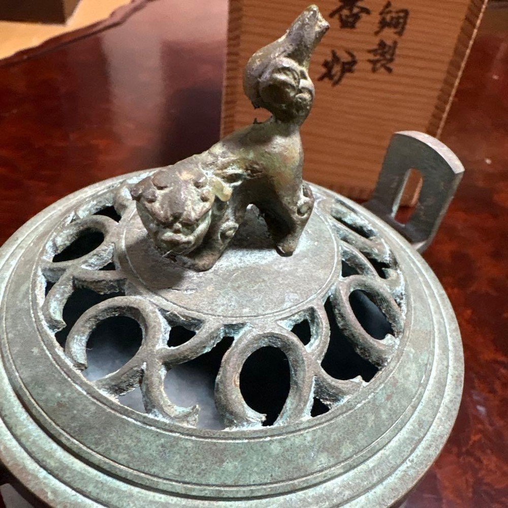 Bronze Incense Burner 3.9 in Shishi Lion Vintage Japanese Censer Sculpture Decor