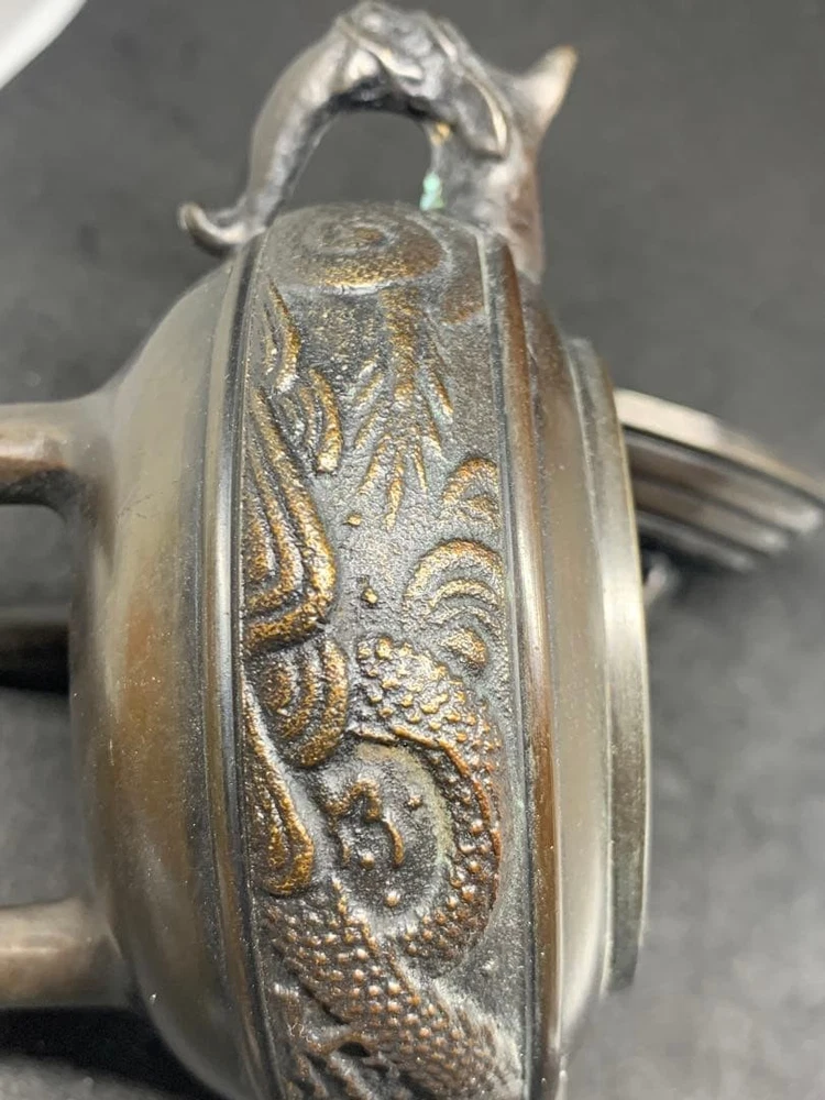 Vintage Bronze Incense Burner Dragon Foo Dog Lion Japanese Censer 5.9 in Vintage Bronze Incense Burner Dragon Foo Dog Lion Japanese Censer 5.9 in Description SIZE Height: 5.9 inch Width: Length: In most cases, accessories shown in the photos (such as stands or original storage boxes) are not included with the item. If any accessories are included, this will be clearly stated in the item title. For details regarding the item’s condition, please refer to the photos. If you have any questions or if the condition is difficult to judge from the images, feel free to contact us. We are happy to assist you and will respond kindly and promptly. Payment Supports managed payments Please pay within 5 days after auction is finished. About Us We ship worldwide. Feel free to ask any questions in English, German, French or Spanish. We are located in Japan. It's our pleasure to make you happy by proposing our recommend item. If you have any questions or request about items, please feel free to ask us. International Buyers - Please Note: -Import duties, taxes, and charges are not included in the item price or shipping charges. These charges are the buyer's responsibility. -Please check with your country's customs office to determine what these additional costs will be prior to bidding/buying. -These charges are normally collected by the delivering freight (shipping) company or when you pick the item up - do not confuse them for additional shipping charges. -We do not mark merchandise values below value or mark items as - gifts - The US and International government regulations prohibit such behavior. Thank you for your understanding.