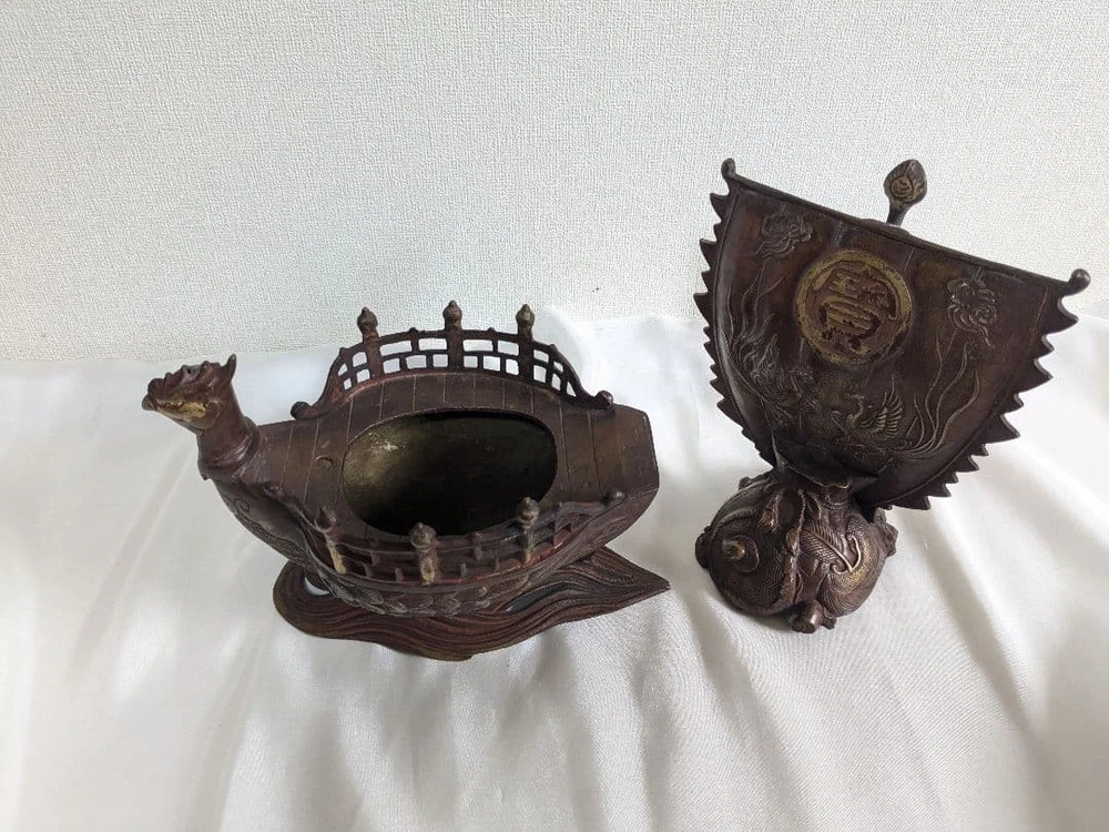 {{TITLE}} Bronze Large Statue 10.2in Phoenix Ship Incense Burner Japanese Censer Sculpture Description SIZE Height: 10.2 inch In most cases, accessories shown in the photos (such as stands or original storage boxes) are not included with the item. If any accessories are included, this will be clearly stated in the item title. For details regarding the item condition, please refer to the photos. If you have any questions or if the condition is difficult to judge from the images, feel free to contact us. We are happy to assist you and will respond kindly and promptly. Browse our collection of Japanese antiques & collectibles Visit our eBay Store – ANTIQUE JAPAN STORE Carefully selected one-of-a-kind items. Business and bulk inquiries are welcome. Payment We accept managed payments. Please pay within 5 days after the auction ends. About Us We ship worldwide. Feel free to ask any questions in English, German, French or Spanish. We are located in Japan. It's our pleasure to make you happy by proposing our recommend item. If you have any questions or request about items, please feel free to ask us. International Buyers - Please Note: -In accordance with Ebay policy, the sales price for items destined for the US includes customs duties. -For shipments outside the United States, import duties, taxes, and charges are not included in the item price or shipping charges. These charges are the buyer's responsibility. -Please check with your country's customs office to determine what these additional costs will be prior to bidding/buying. -These charges are normally collected by the delivering freight (shipping) company or when you pick the item up - do not confuse them for additional shipping charges. -We do not mark merchandise values below value or mark items as - gifts - The US and International government regulations prohibit such behavior. Thank you for your understanding.