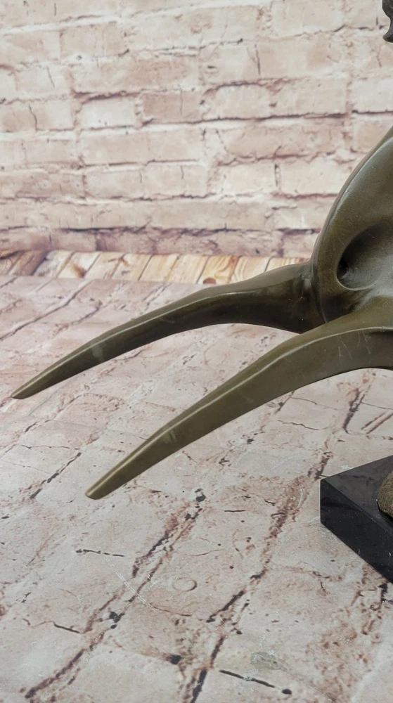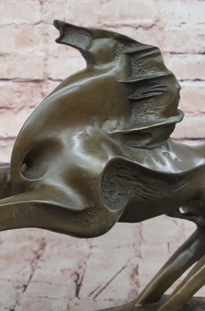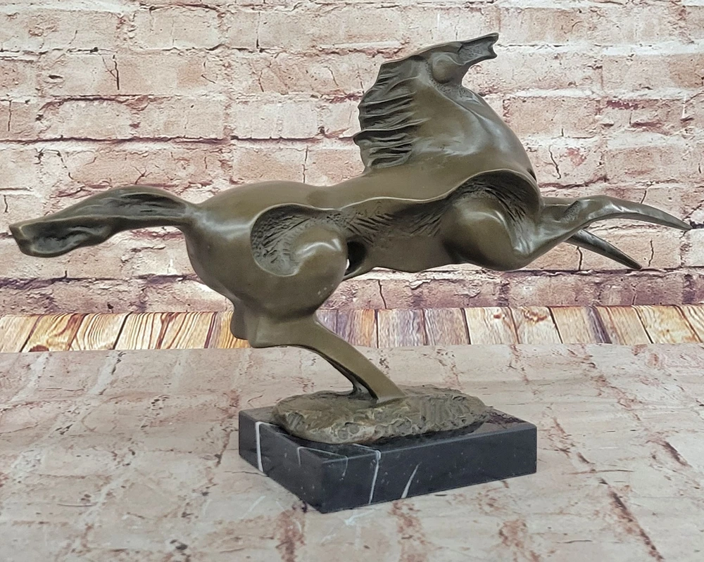 Bronze Marble Statue Wild Horse Stampede Mustang Ranch Equestrian Deco Farm Sale Bronze Marble Statue Wild Horse Stampede Mustang Ranch Equestrian Deco Farm Sale Condition : This sculpture is in perfect condition Bronze Dimensions with Marble Base: Height 11" X Width 19.5" Marble Dimensions:6" X 5" Height without base:10" Weight: 13 LBS Inventory:72K0618127 This captivating abstract and modern bronze sculpture captures the unbridled energy and spirit of a galloping horse. Rearing up against an invisible wind, the horse lets out a wild neigh, embodying the raw emotion and power of nature. The flowing, undefined mane conveys dynamic movement, while fine linear lines etched into the body emphasize the creative force behind the piece. The abstract design seamlessly merges the horse's hind legs with the base, providing both structural support and artistic continuity. This handcrafted sculpture, cast using the ancient “Lost Wax Method,” features a rich dark brown patina that enhances its depth and texture. 100% bronze and entirely handmade, this remarkable work of art is signed by the artist Milo, whose mastery in capturing motion and emotion is evident in every detail. A stunning centerpiece, this sculpture celebrates the wild beauty of the horse and the boundless creativity of abstract art. Shipping Terms : Most of our items are shipped via USPS (United States Postal Service) mail or UPS. Most orders are shipped within 24-48 hours of purchase. Please be aware that not all items are available for USPS shipping due to size and weight. We do ship to Hawaii, Alaska, Canada, Puerto Rico, APO/AE, and U.S. Virgin Islands, however, an additional charge may be required. Please contact us before making any purchases in these areas. For Non-USA customers, you may be responsible for all duty, tax, brokerage fees that may be due upon delivery (shipping costs cover freight charges only). We also ship internationally. Please refer to the "Shipping and Handling" chart for the rates for each area. Payment : We accept just about any form of payment. PayPal, Master Card, Visa or American Express credit cards. Money orders, cashiers checks, and even personal or business checks. For governmental institutions, we will also accept a purchase order. Please understand that for personal or business checks we have to wait for the check to clear (usually 7 days) before shipping. Condition : New Detailed Hand Crafted Hot Cast Bronze Satisfaction Guaranteed. This is Stock Photo, Slight Color Variation!! Listing and template services provided by inkFrog