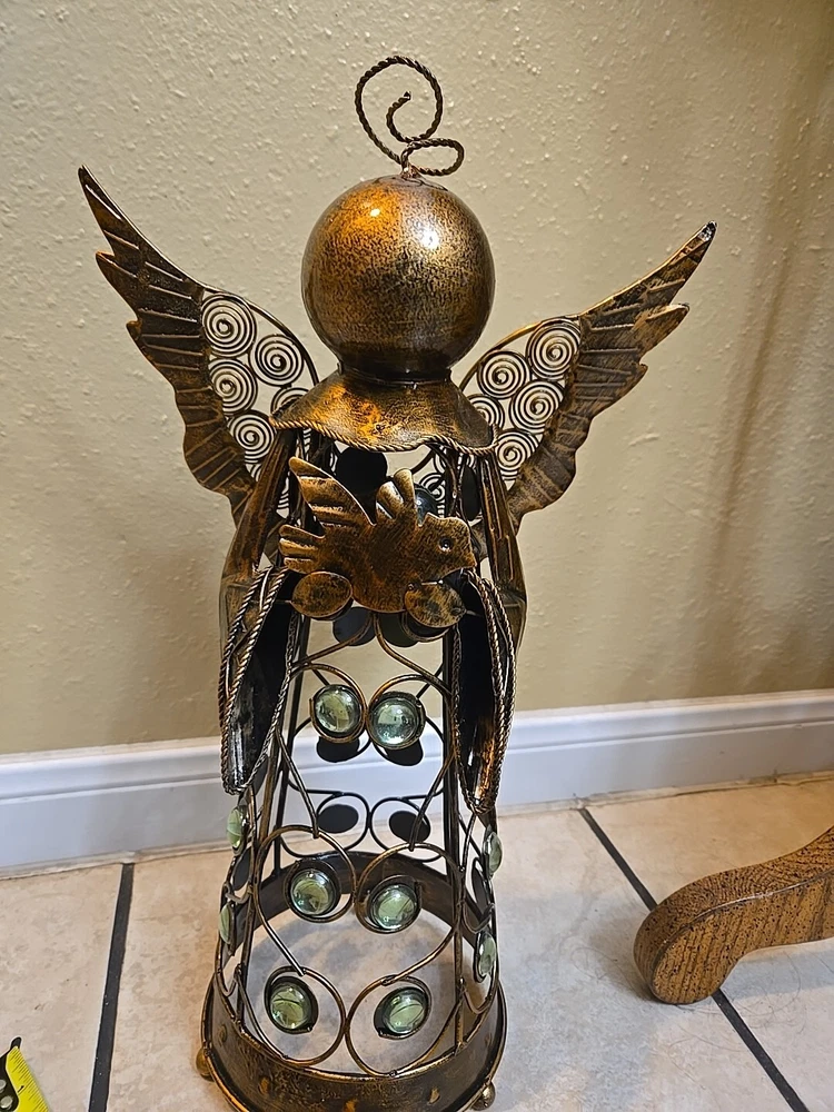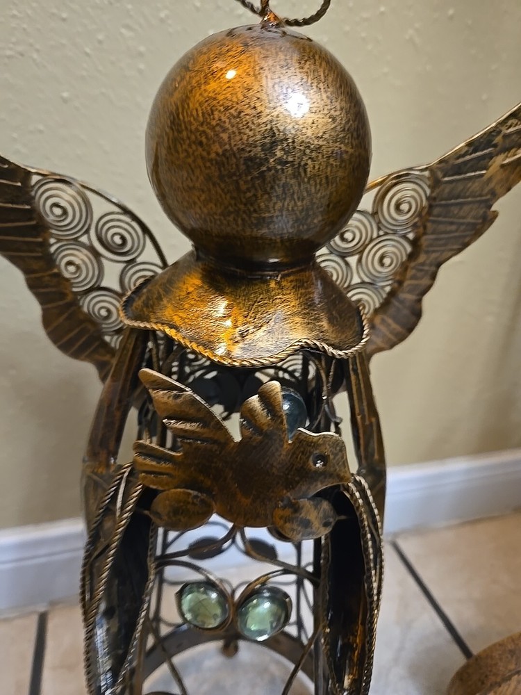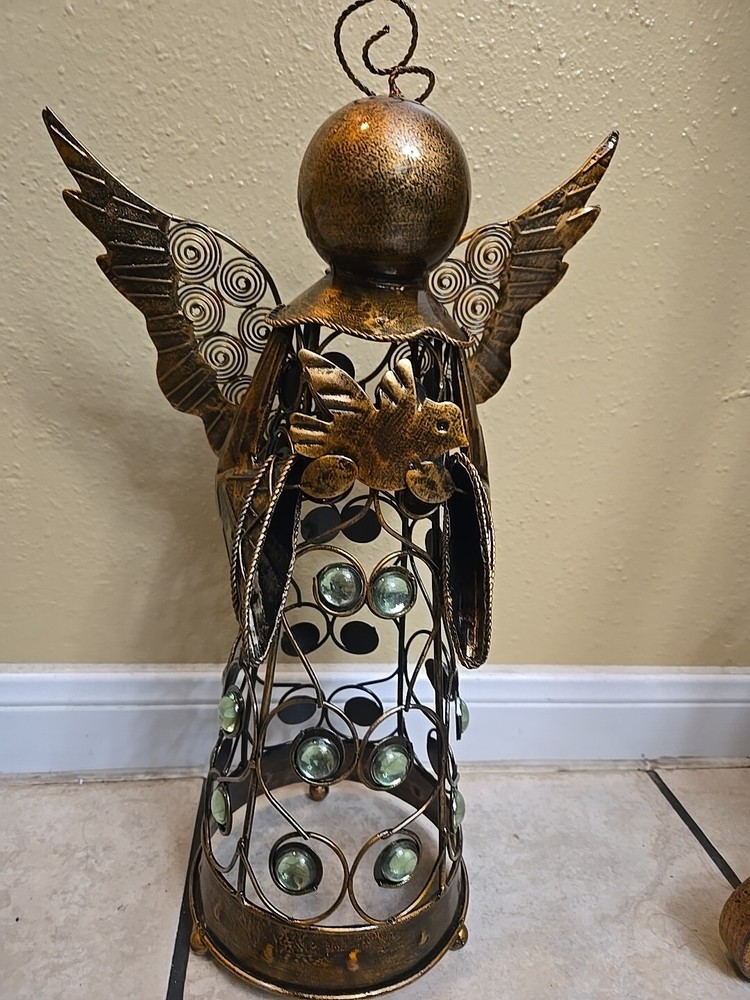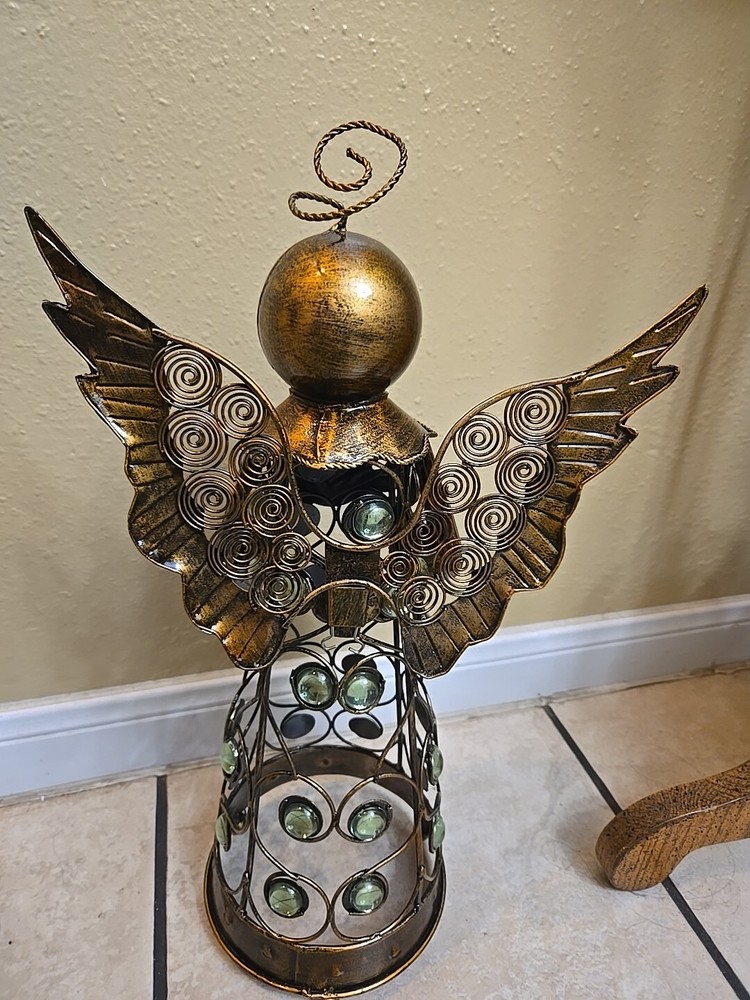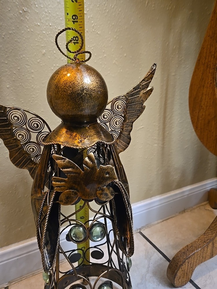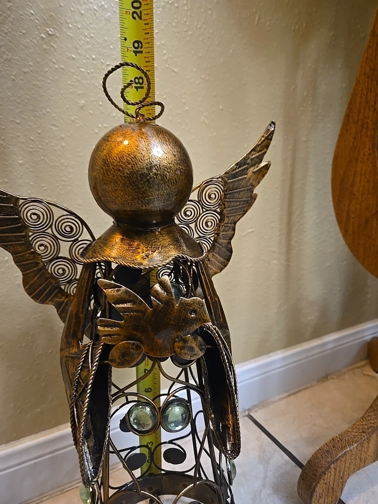 Metal Filigree Angel Garden Statue 18" Bronze Color, but I don't know what Metal it is.Good condition, see pictures.
