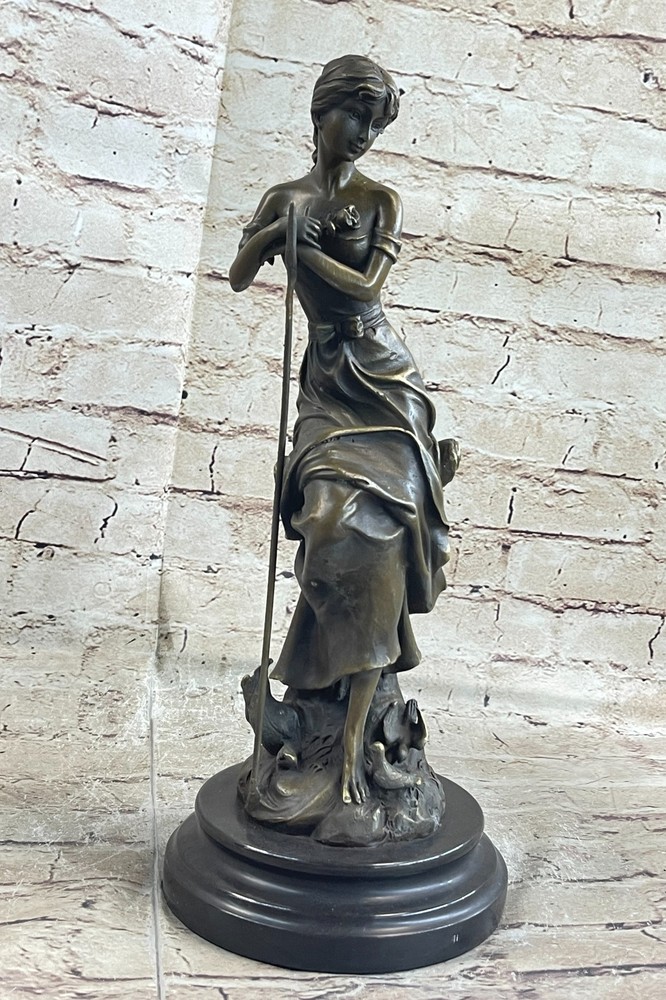 Bronze Sculpture Dreaming By Auguste Moreau Art Deco Nouveau Deal Gift Artwork Bronze Sculpture Dreaming By Auguste Moreau Art Deco Nouveau Deal Gift Artwork Condition : This sculpture is in perfect condition. Bronze Dimensions with Marble Base: Height 14" X Width 5" Marble Dimensions: Diameter 5" Height without base:13" Weight:9 LBS Inventory:78STE43887 Experience the timeless beauty of the handmade bronze statue by Auguste Moreau. This exquisite sculpture is crafted using the traditional Lost Wax Casting Process, ensuring a high-quality piece that can be treasured and passed down through generations. Every small detail is meticulously hand-finished, resulting in a stunning bronze artwork that is sure to become a favorite. Not only is this bronze statue a work of art, but it is also designed to withstand the elements and requires minimal maintenance. Its durable construction allows for impressive display in various settings, whether it's showcased in a home, office, or even outdoors. The craftsmanship and attention to detail make it an exceptional gift for any occasion. With over 26 years of experience, our bronzes are Foundry Direct, meaning they are handmade and cast using the same traditional process as sculptures created a century ago. We take pride in offering the highest quality at the lowest price, ensuring that you receive a remarkable bronze masterpiece that will be cherished for years to come. Discover the beauty and value of our bronze sculptures and enjoy the assurance of our lowest price guarantee. Innocent Young Lady Holding Flower Bronze Sculpture Statue Figure Auguste Moreau STE-438 Video will open in a new window Using the eBay App? Paste link into a browser window: [isdntekvideo] Shipping Terms : Most of our items are shipped via USPS (United States Postal Service) mail or UPS. Most orders are shipped within 24-48 hours of purchase. Please be aware that not all items are available for USPS shipping due to size and weight. We do ship to Hawaii, Alaska, Canada, Puerto Rico, APO/AE, and U.S. Virgin Islands, however, an additional charge may be required. Please contact us before making any purchases in these areas. For Non-USA customers, you may be responsible for all duty, tax, brokerage fees that may be due upon delivery (shipping costs cover freight charges only). We also ship internationally. Please refer to the "Shipping and Handling" chart for the rates for each area. Payment : We accept just about any form of payment. PayPal, Master Card, Visa or American Express credit cards. Money orders, cashiers checks, and even personal or business checks. For governmental institutions, we will also accept a purchase order. Please understand that for personal or business checks we have to wait for the check to clear (usually 7 days) before shipping. Condition : New Detailed Hand Crafted Hot Cast Bronze Satisfaction Guaranteed. This is Stock Photo, Slight Color Variation!! Listing and template services provided by inkFrog