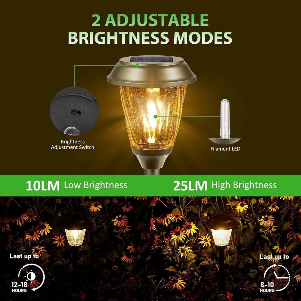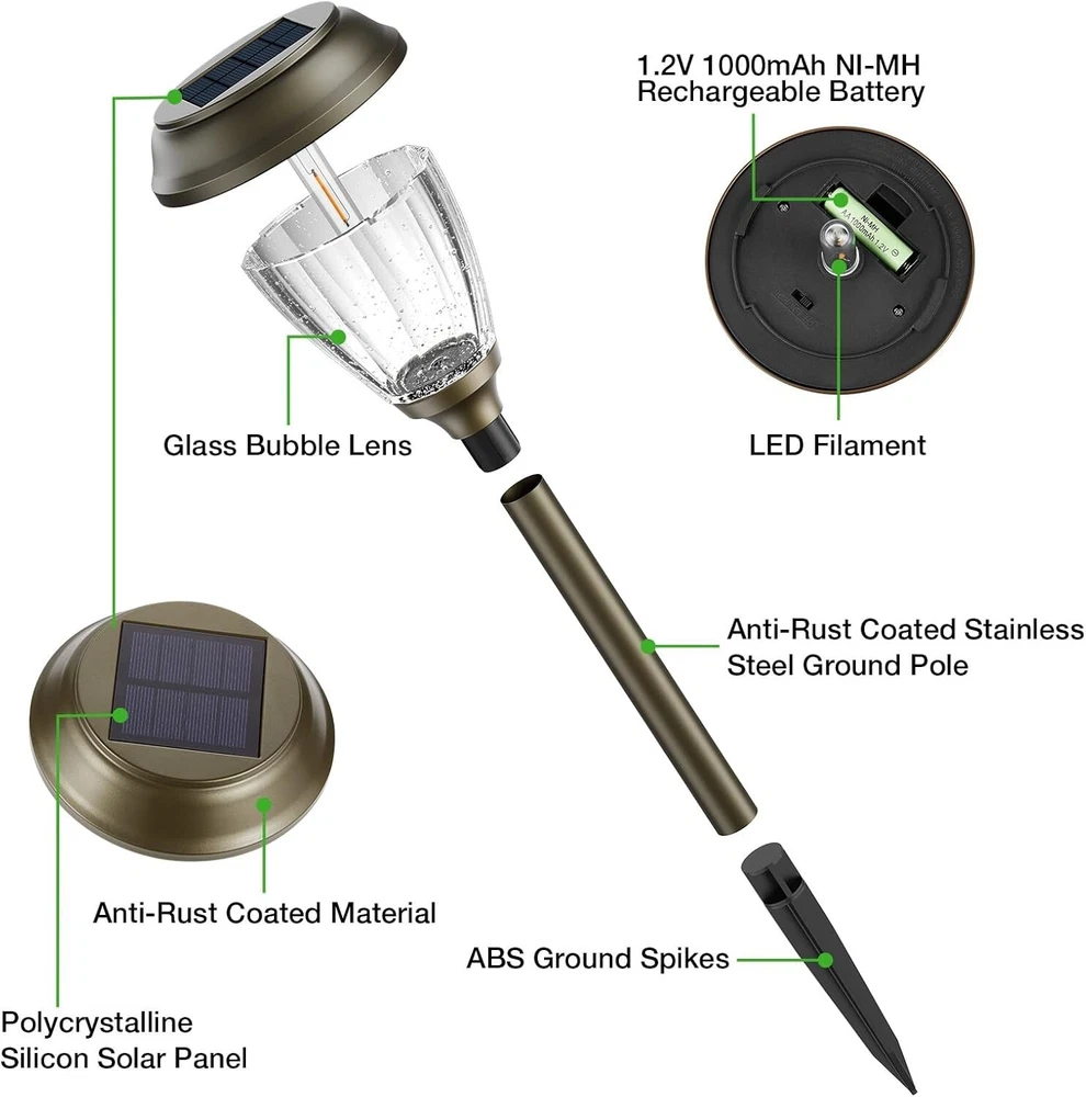 Bronze Solar Pathway Lights - 6 Pack Outdoor Lighting with Rechargeable Battery ‹ › ‹ › ‹ › ‹ › ‹ › ‹ › ‹ › ‹ › ‹ › ‹ › ‹ › Bronze Solar Pathway Lights - 6 Pack Illuminate your outdoor spaces with elegance and serenity! Features: 2 Optional Lighting Modes: Choose between Low Light Mode (10 LM, up to 10 hours) or High Light Mode (25 LM, up to 8 hours) for customized illumination. High-Efficiency Solar Panel: Built-in 1000 mAh rechargeable battery and a 0.55 W monocrystalline silicon solar panel that ensures a 25%-30% conversion rate. Unique Design: Dazzling LED tungsten filament and bubble glass lens create 360° radial warm white lighting, perfect for adding ambience with a stunning star-pattern effect. Durability: Constructed from rust-resistant materials and premium bronze-finished stainless steel, along with upgraded ABS ground spikes for longevity. IP65 Waterproof & Heatproof: Designed to withstand rain, frost, and snow, making them reliable and functional in any weather condition. Easy Installation: No electrical setup needed! Simply stake them into the ground in an area that receives ample sunlight. Benefits: Provides enchanting lighting that enhances the beauty of your garden, lawn, or pathway. Energy-efficient and cost-effective outdoor lighting solution. Perfect for enhancing safety while creating a delightful outdoor ambiance. An ideal gift for family and friends, bringing warmth and charm to any celebration or gathering. Why Choose Our Bronze Solar Pathway Lights? Transform your outdoor aesthetics with our Bronze Solar Pathway Lights, designed to create an inviting atmosphere while ensuring practical functionality. With their captivating star-pattern light and weather resilience, these lights not only enhance the beauty of your outdoor spaces but also provide safety and convenience in an eco-friendly way. Whether it's a garden party, a wedding, or a quiet evening on your patio, these lights are the perfect companion to elevate your surroundings. Experience the perfect blend of elegance and efficiency - order your 6 Pack today! Shipping Free & Fast Shipping - We offer free shipping to most of the USA with a normal delivery time of 3-7 days. However, due to the current situation, additional delivery time (up to 3 weeks) may be required for some items. Alternative Carriers - We may use alternative carriers (e.g. USPS, FedEx, UPS, etc.) to ensure your package arrives safely and on time. Due to the use of multiple carriers, we are unable to provide a tracking number automatically. Handling Time - Orders are processed and shipped within 1-2 business days of receiving cleared payment. Shipping Restrictions - Shipping to Alaska, Hawaii, Puerto Rico, Guam, and other US territories may incur shipping charges or delivery restrictions. Please contact us before ordering, or your order can be refunded/cancelled. State Restrictions - There may be restrictions based on your state of purchase. For example, certain items may not be shipped to California due to state regulations. Contact for Tracking Updates - If you require tracking updates or have any concerns about the delivery of your order, please feel free to contact us, and we will be happy to assist you. Return 30-Day Hassle-Free Returns - We want you to be completely satisfied with your purchase. If you are not, you can return the item within 30 days of receiving it for a full refund or exchange. Easy Return Process - To start a return, simply contact us and we will provide you with a prepaid return shipping label and detailed instructions. Restocking Fee - There are no restocking fees for returns. However, the buyer is responsible for return shipping costs if the return is not due to a seller's error. Refund Processing Time - Refunds will be processed within 5 business days of receiving the returned item in its original condition. Payment We accept all major credit cards, PayPal, and Apple Pay for your convenience. Your payment information is secure and encrypted to ensure a safe and seamless transaction. Please complete your payment within 3 days of purchase to avoid any delays in shipping. Feedback Your feedback is extremely important to us. We strive to provide the best products and customer service possible. If you are satisfied with your purchase, please take a moment to leave us a positive review. If you have any concerns or issues with your order, please contact us before leaving negative feedback. We are committed to resolving any problems and ensuring your satisfaction. Contact Us If you have any questions or concerns, please feel free to reach out to our customer support team. You can contact us through the eBay messaging system. We are available Monday to Friday, 9:00 am to 5:00 pm EST, and we will do our best to respond to your inquiry within 24 hours. Buy it now and enjoy a pleasant shopping experience! UPC: Not Set Unit Quantity: 6 Pack Features: Energy Efficient,Waterproof,Dimmable,Rechargeable,Wireless Charging Theme: Solar Lights Outdoor Light Color: Warm White Mounting: Ground,Pole Mount Material: Glass,Bronze-finished Stainless Steel Control Style: Remote Control,Toggle Smart Home Compatibility: Not Set Labels & Certifications: Not Set Type: Pathway Brand: Unbranded Power Source: Solar Powered Installation Area: Outdoor Sensor Type: Light Lighting Technology: LED Number of Lights: 6 Color: Bronze Number of Settings: Not Set Energy Star: Not Set MPN: Not Set EC Range: Not Set Style: Garden Finish: Polished Size: Medium Power Consumption: 1.2 W Voltage: 1.2 V Bulb Shape Code: Not Set IP Rating: IP65 Item Diameter: 5.12 in Country/Region of Manufacture: Not Set Lumens: 25 lm Color Temperature: 3000 K Bulb Life Hours: More Than 50 Model: Not Set Item Height: Not Set Item Length: Not Set Item Weight: 6.85 lb Item Width: Not Set Unit Type: lb