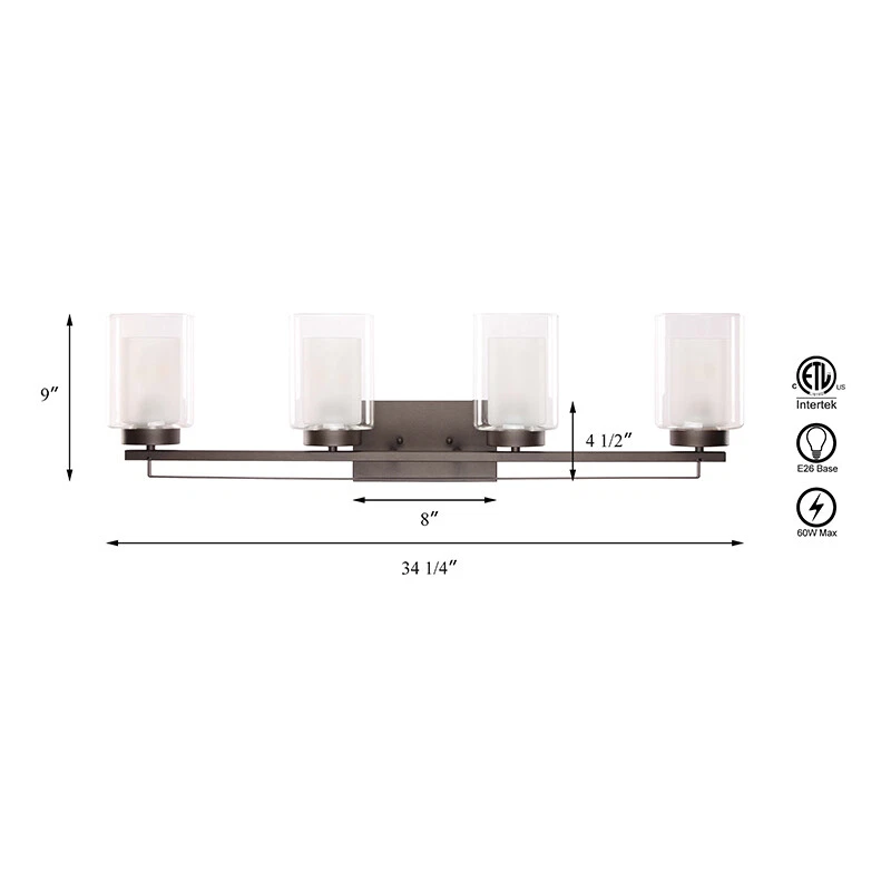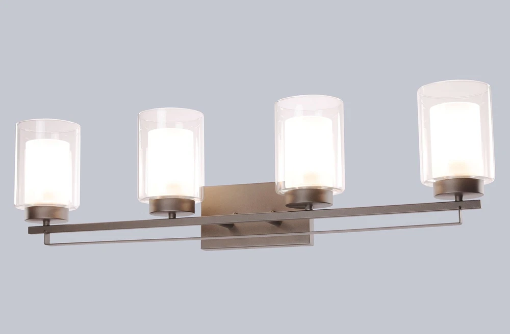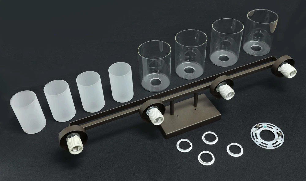 Personalized: No Room: Bathroom, Bedroom, Dining Room, Entryway, Kitchen, Living Room Material: Metal, Clear Glass and Frosted Glass Labels & Certifications: ETL Shade Shape: Cylinder Brand: XiNBEi Lighting Package: 1 pack Manufacturer Warranty: 1 Year Color: Brown Era: 21st Century (2000-now) Control Style: Wall Switch Type: Vanity Lighting Installation Area: Indoor Features: Wall Mounted, Hardwired, 4-Light Finish: Dark Bronze Manufacturer: Xinbei Lighting Model: XB-W1195-4-DB Voltage: 120 V UPC: 733430205409 Light Direction: Downwards, Upwards Style: Transitional gtin13: 733430205409 Lighting Technology: E26 Bulb Shape Code: E26 Department: Adults