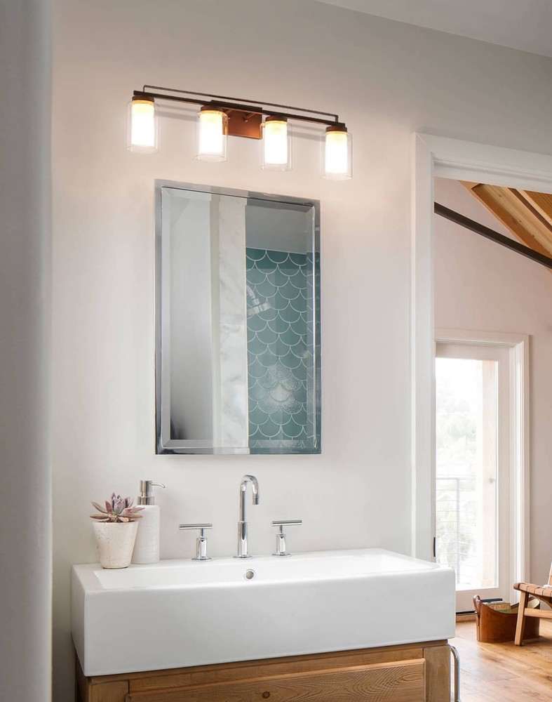 Bronze Vanity Light Vintage 4 Light Bathroom Light Fxtures Glass Over Mirror