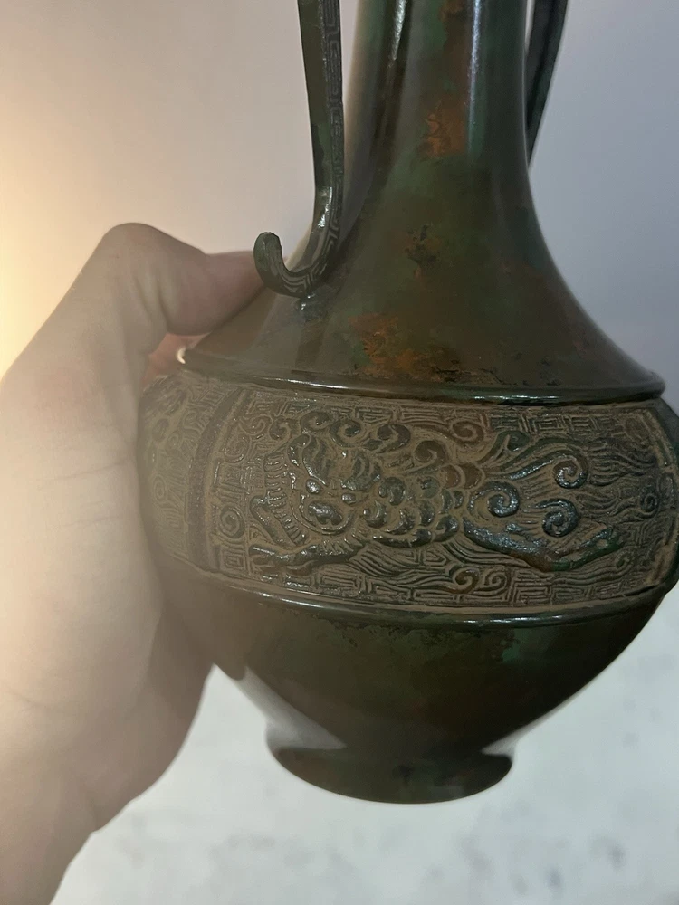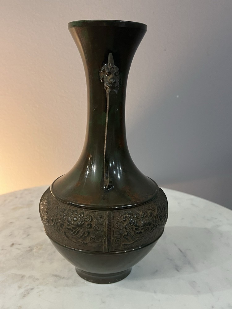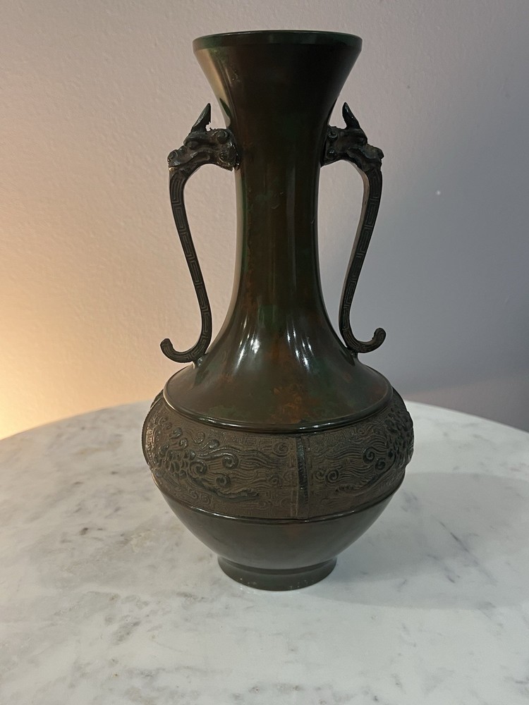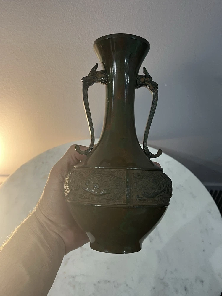 Bronze Vintage Dragon Metal Vase 9.5” Antique. Condition is Used. Shipped with USPS Ground Advantage.