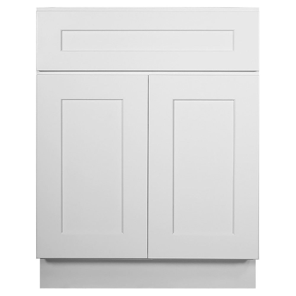 This cabinet is a fantastic addition to any kitchen or bathroom! The clean white finish and double-door design with a single drawer offer both style and functionality. Assembly was straightforward, and the included hardware made it easy. The interior is smooth and well-finished, perfect for storage. Sturdy construction and easy-to-clean surfaces make it a practical choice. Very happy with this purchase—great quality for the price!