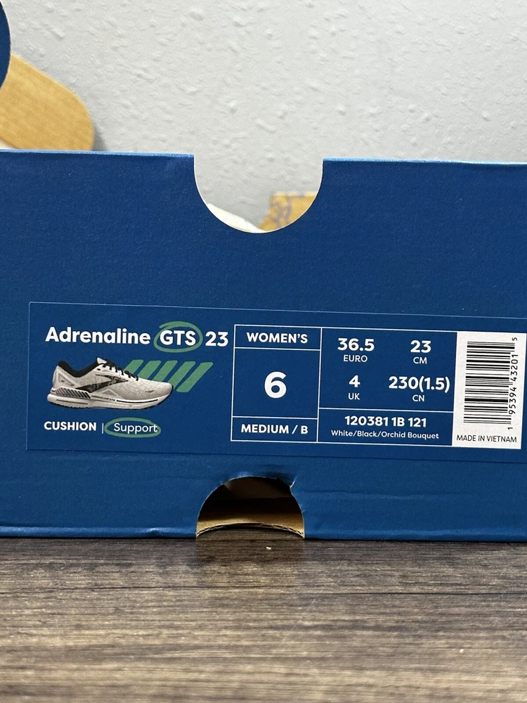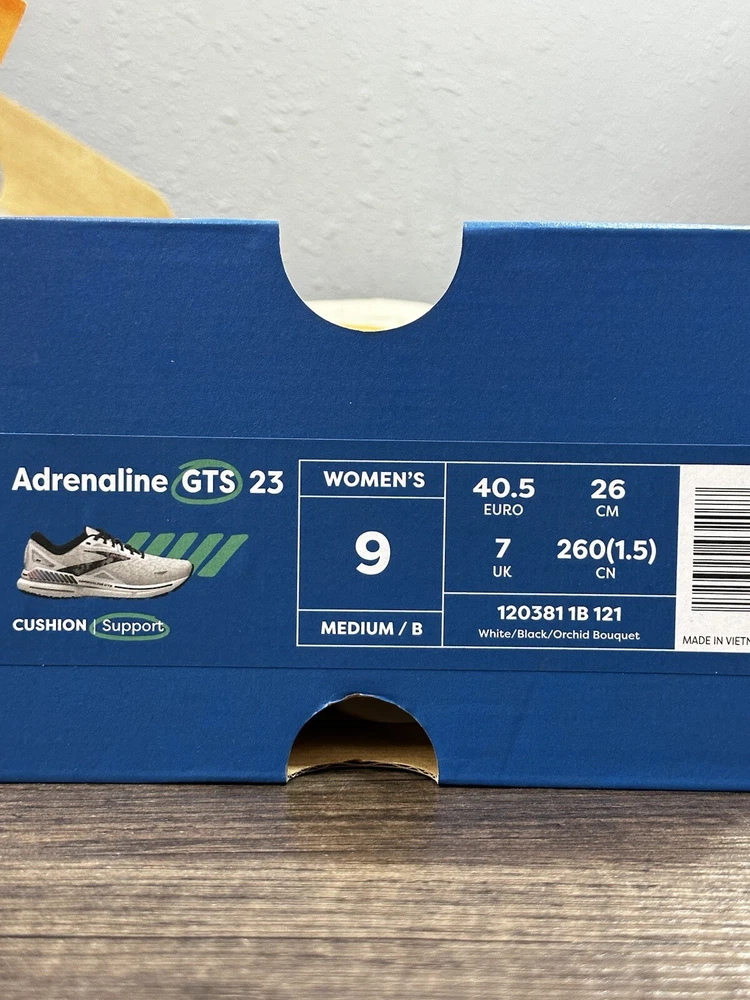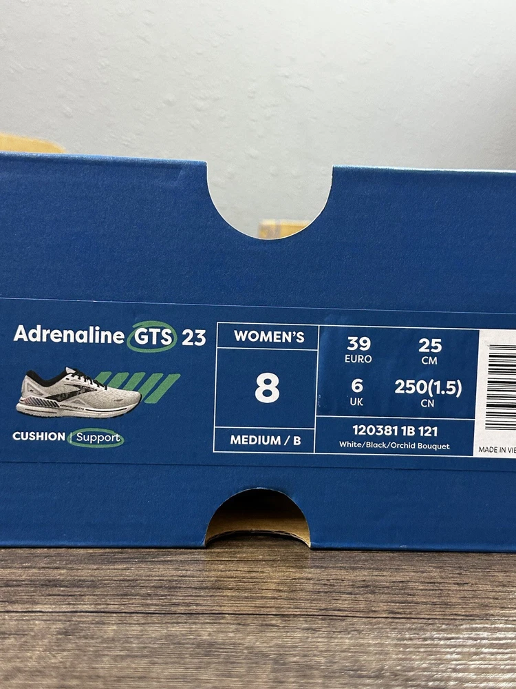 Thank you for considering our store! We appreciate your business and support! Item: Brooks Adrenaline GTS 23 White Orchid Black Size: Women's Size 6B-9.5B Box may have some minor shelf wear or shipping wear such as small tears , dent , etc. Shoe is new i and unused. “New with box" Item number: 1203811B-121 You must do so from your end within one hour of the order. Communications between buyer & seller are blocked by Ebay from the moment you purchase or at the acceptance of an offer. 100% authentic Shipped to you fast via USPS Priority Mail We consider all reasonable offers! With that said, we invite you to “watch" our items to receive special offers sent directly to you! Thank you for visiting