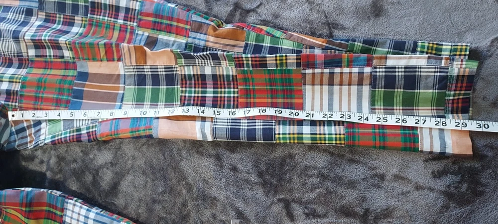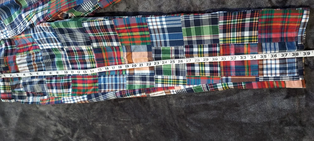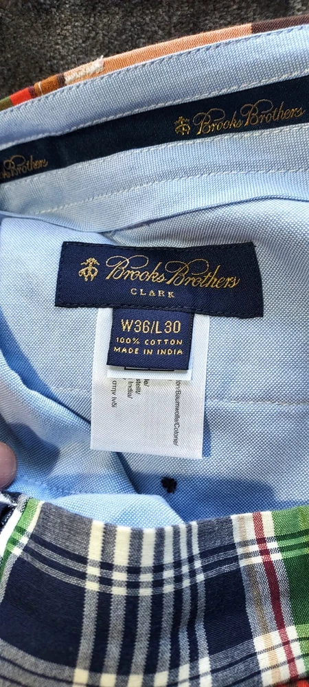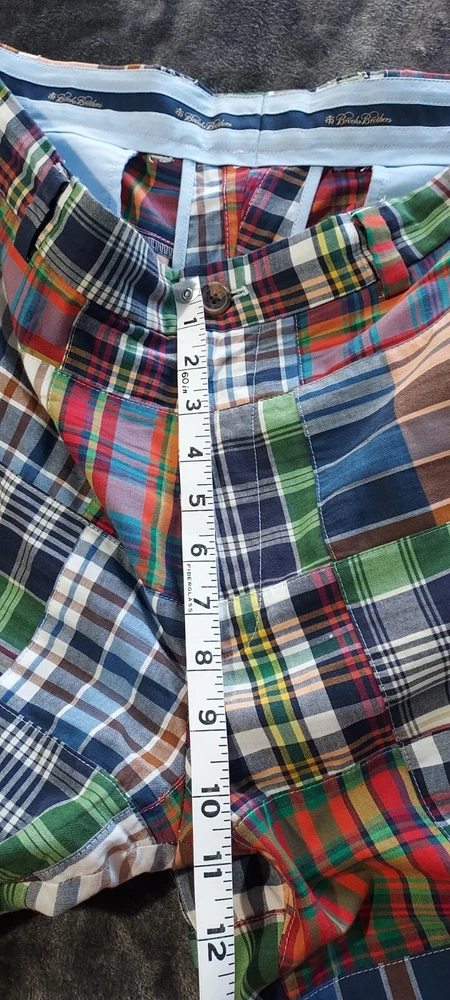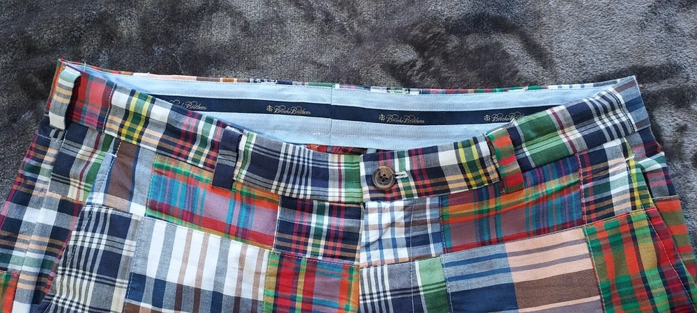 Brooks Brothers "Clark" mens pants. Madras plaid patchwork (not printed patchwork). 5 pocket. 100% cotton. Made in India. Height of preppy golf pants. Pre-owned - Very good condition. No stains, holes, or tears. See photos as added description. Size 36 inch waist x 30 inch inseam. Aprox. 10 inch rise.