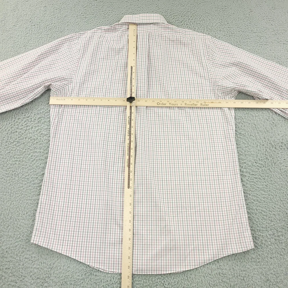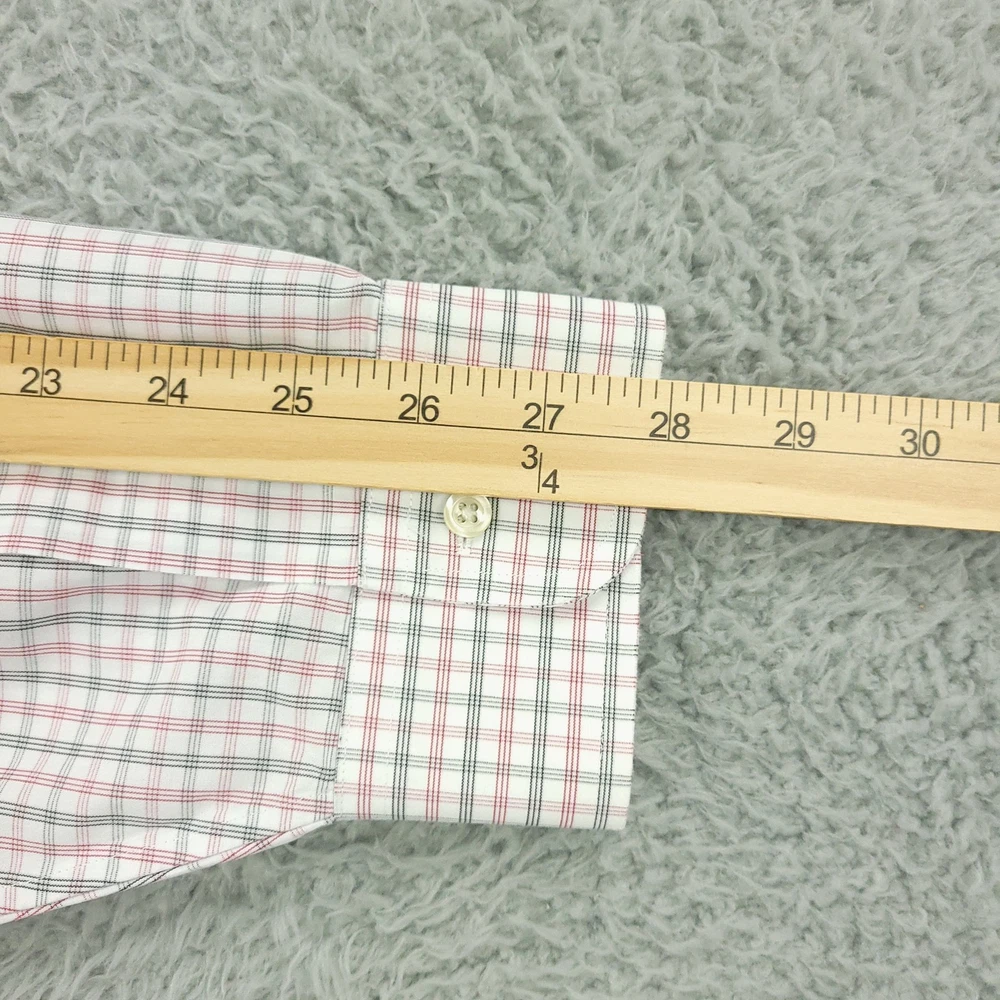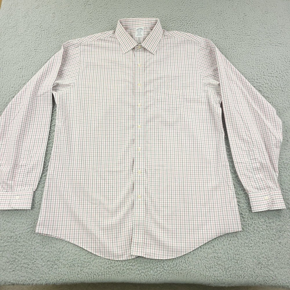 Brooks Brothers Dress Shirt Mens 17.5 White Pink Check Regent Non Iron Cotton Brand: Brooks Brothers Style: Mens long sleeve dress shirt with a full button front, point collar, and classic Regent silhouette. Color: White base with small pink and gray check pattern. Size on tag: Mens 17.5 Material: 100% American Supima cotton non-iron fabric. Made in Malaysia. Features: Wrinkle-resistant non-iron cotton for easy care, standard shirttail hem designed to be worn tucked in, long sleeves with barrel cuffs, left chest patch pocket, back yoke with box pleat for ease of movement, versatile dress shirt suitable for business, office, or smart casual wear. Measurements are included in the photos, compare measurements with your item to ensure proper fit. Items are added daily click here to Visit My Store Combined shipping for US customers is 1.99 for each additional item Items are cleaned per eBay standards & policies